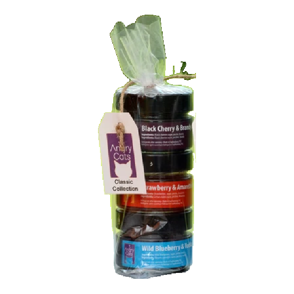 Our Classic Collection includes: Black Cherry & Brandy Jam + Strawberry & Amaretto + Wild Blueberry & Vodka Jams