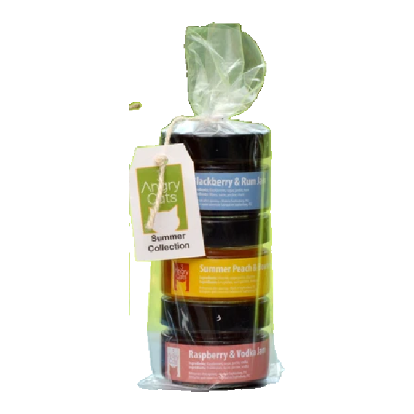 Our Summer Collection includes: Blackberry & Rum + Summer Peach & Bourbon + Raspberry & Vodka Jams Both make great gifts!