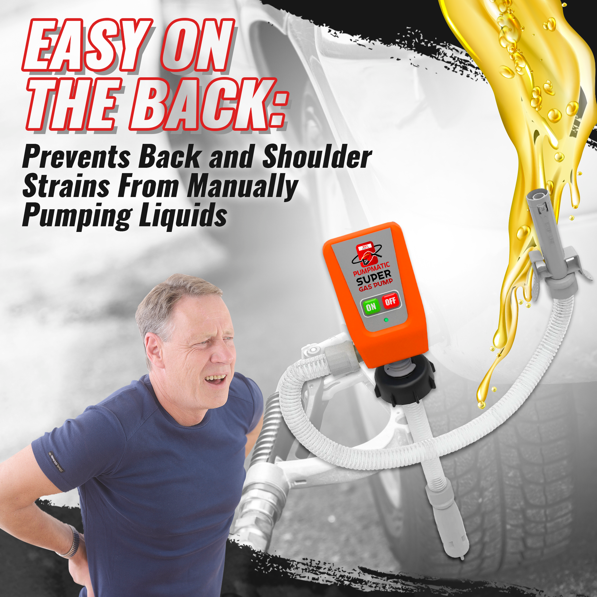 Move fuel & fluids with one hand. No spills. No manual pumping. No back strain.