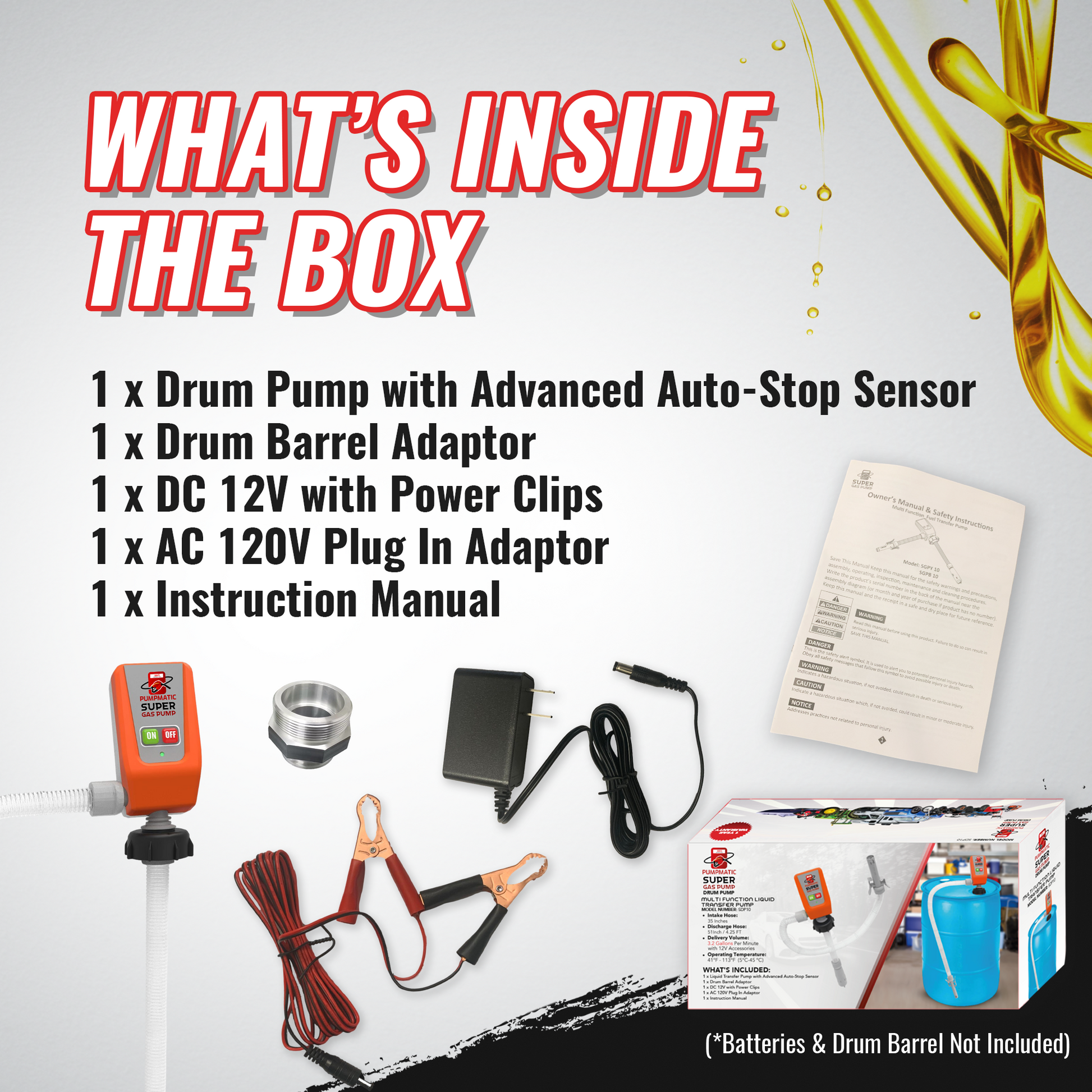 Designed for standard 45-gallon drums using the included drum adapter. Drum not included.