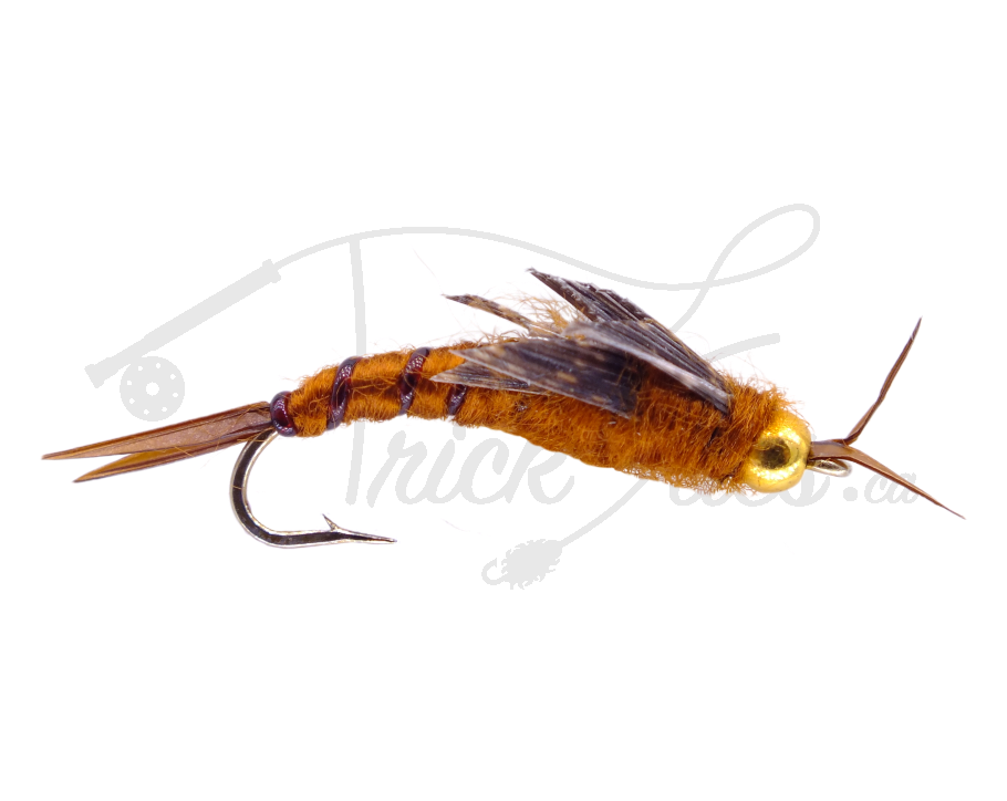 One of our favourite Brown Trout streams, Prairie Creek is littered with stoneflies and so we tied the Beadhead Kaufmann's Stone Brown. This stonefly has pulled many trout of all kinds from their lairs. Don't take your next trip without one!