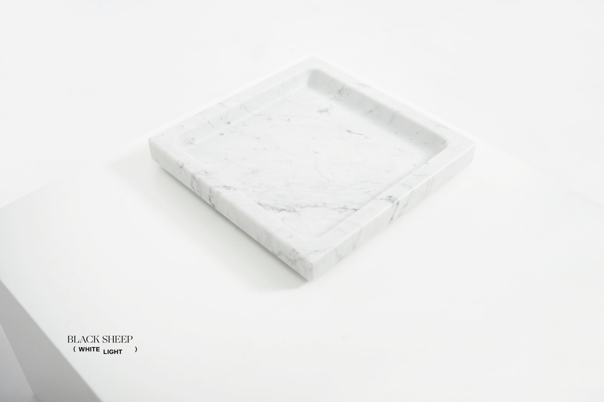 Our marble square tray is carved from a solid piece of marble with an elegant base reveal, and finished in a honed surface treatment.