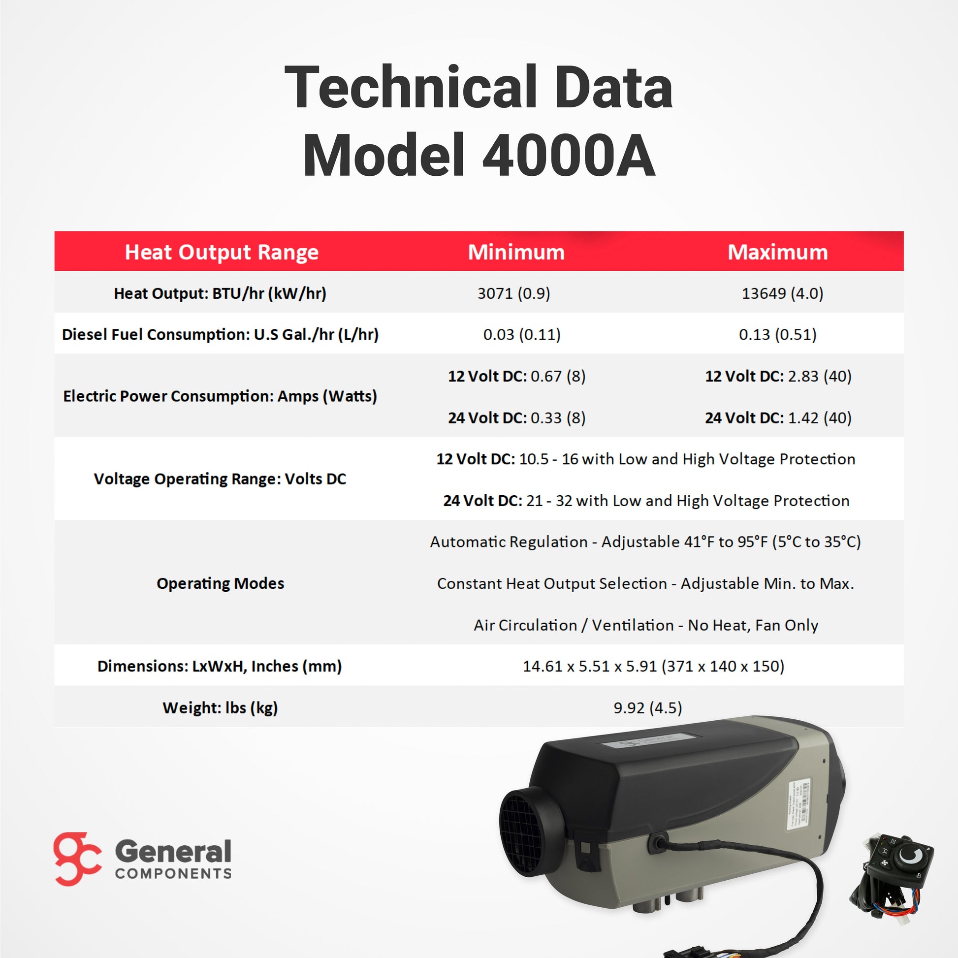 - Fuel Versatility: Compatible with diesel/kerosene or gasoline fuels, available in 12V and 24V versions.