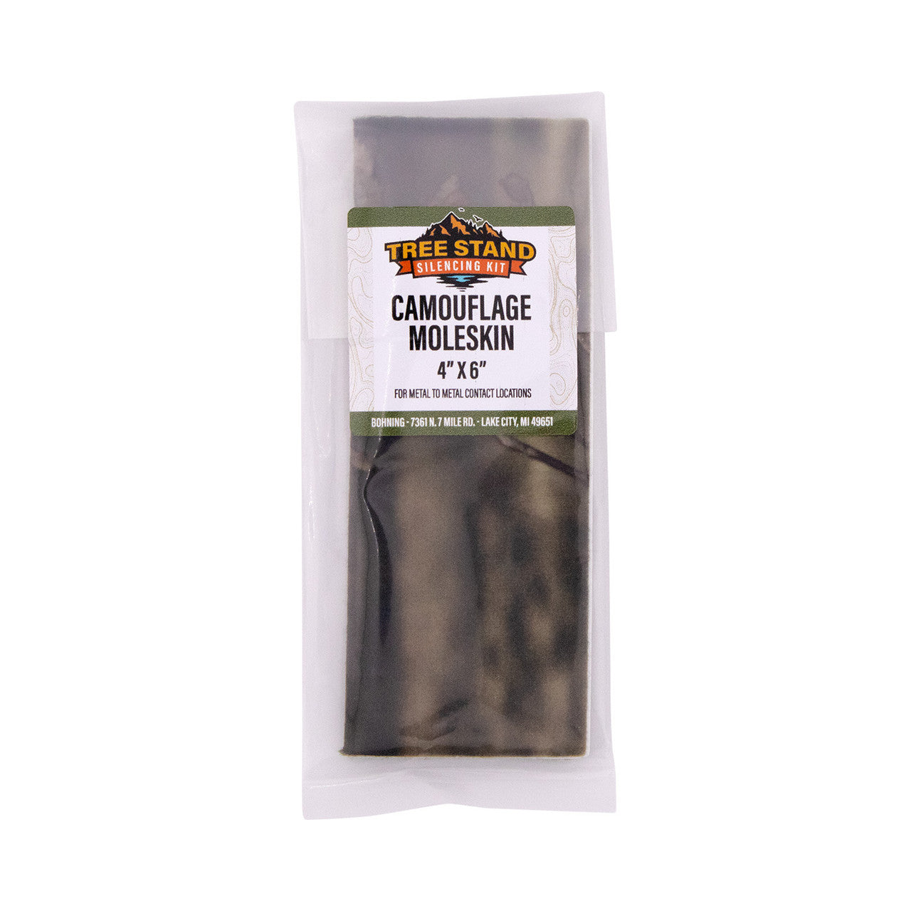 - Also included is a 4”x 6” camouflage moleskin for application on any metal to metal contact points that make that irritating clanging or scraping when moving. Adhesive backed and easy to apply. Moleskin should be applied and firmly pressed down when dry. This may peel over time in wet or high temperature environments.