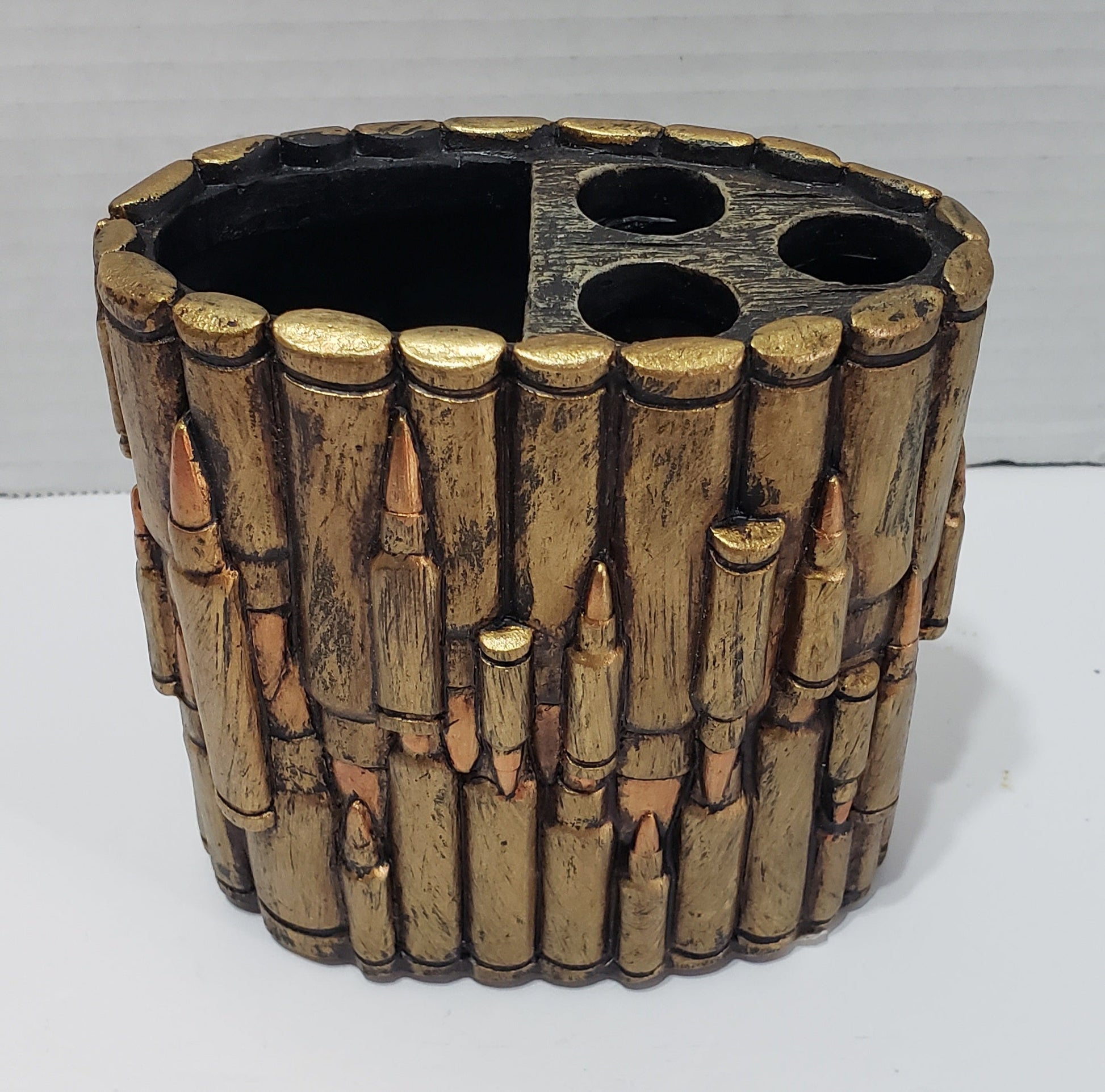 - Add a touch of grit to your decor with this rifle ammo bullets bathroom accent accessory. Painted in gold tone, we align these sculptural bullets to form a toothbrush holder.