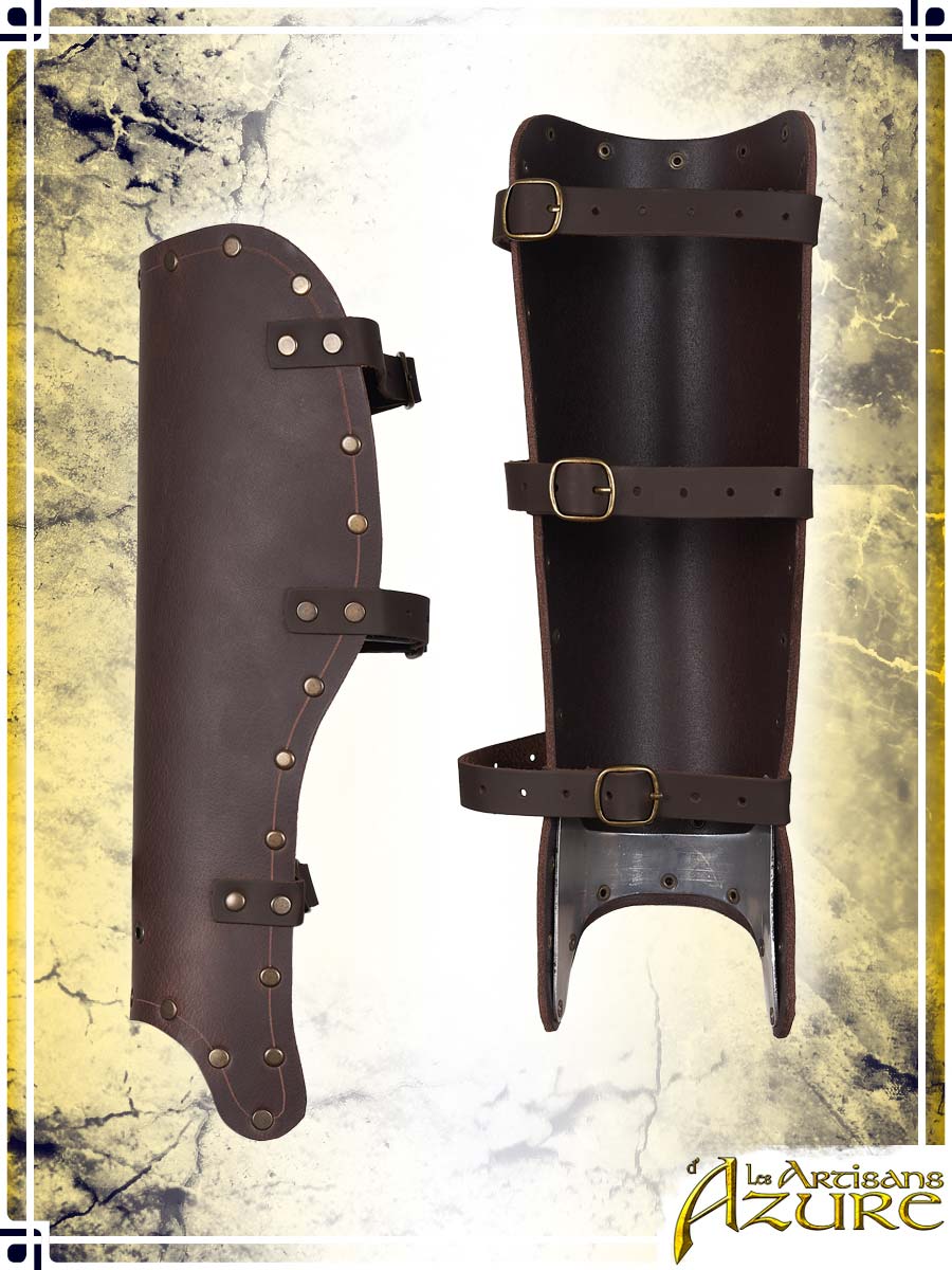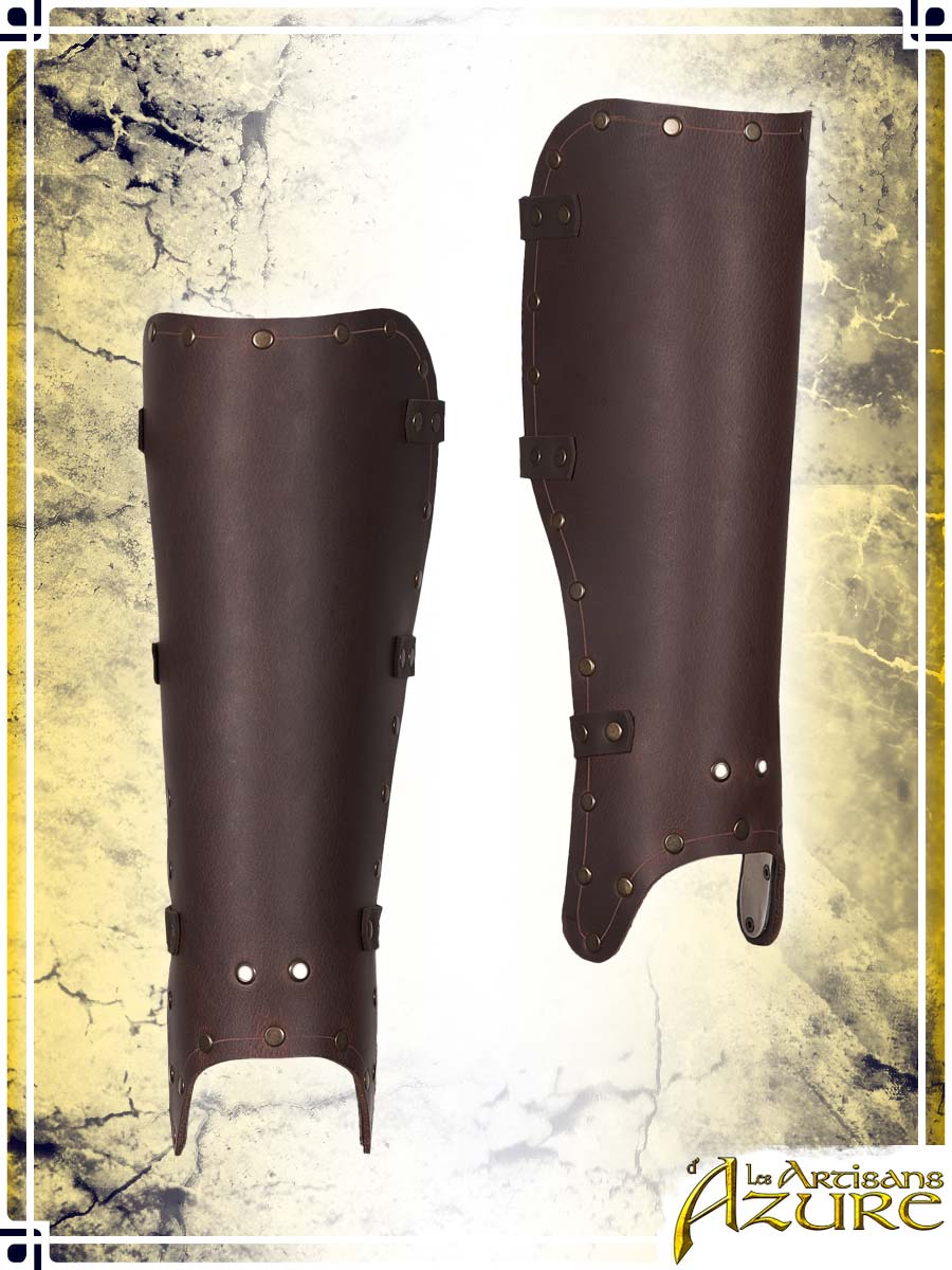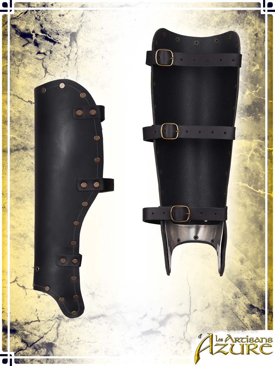 Classic armor pieces are practical, universal models of medieval leather armor. Their simple design suits any type of LARP character while being easily adjustable and compatible with a wide range of accessories. These simple leather greaves are an excellent piece of leather armor to protect your legs. They have hidden aluminum reinforcements at the base, serving to keep their shape over time. Plus, practical eyelets at the bottom allow you to thread lace through your boots to enhance the product's stability on your legs. These pieces of leather armor will be perfect for your next LARP or medieval event as a young warrior, militiaman, guard, soldier, scout, bandit or ranger.