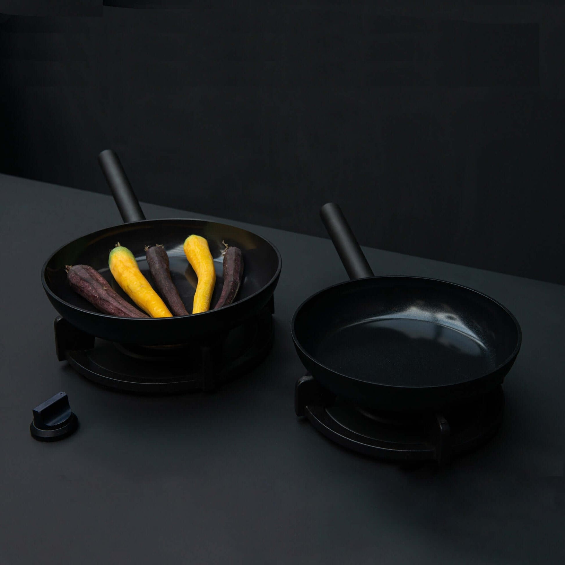 Discover the COMBEKK Ceramic Fry Pans, an amalgamation of lightweight construction and eco-friendliness. Manufactured from recycled aluminum, these pans showcase a visually appealing black design. The ILAG ceramic coating guarantees an impeccable, easy-to-use surface that is free from PFAS and BPA.
