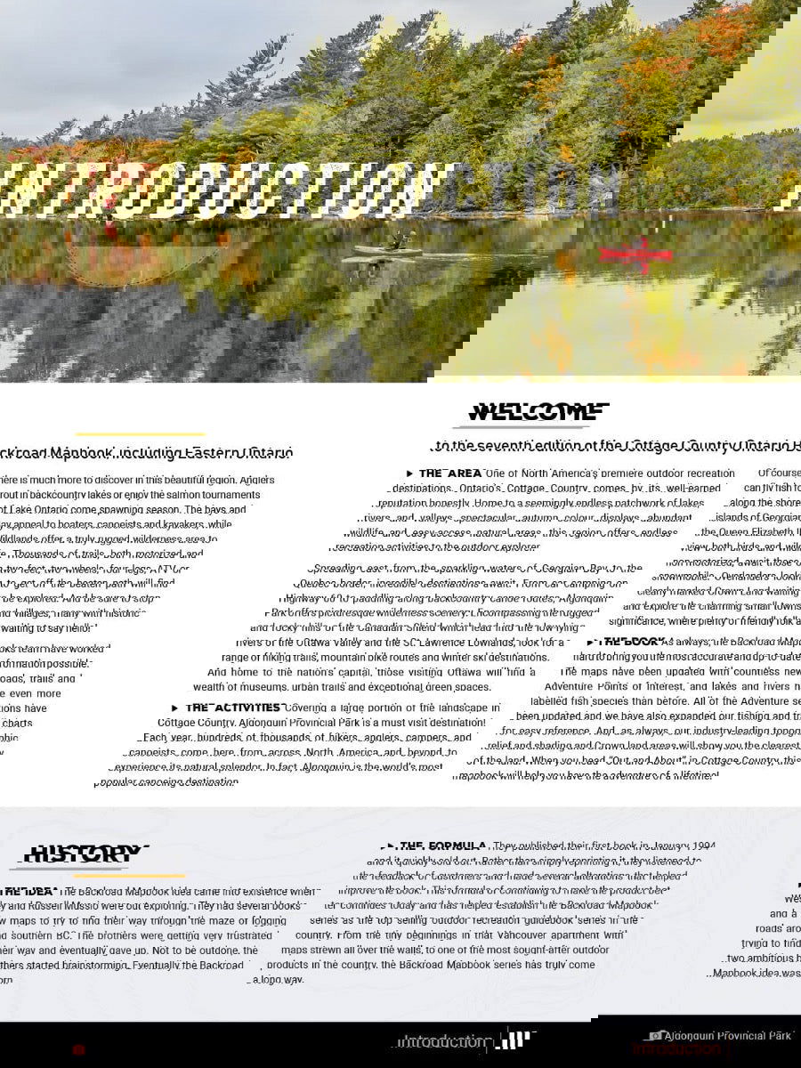 Covering the idyllic cottage destinations of the Muskoka and Kawartha areas, the natural splendor of Algonquin Provincial Park, the bustling National Capital Area and all the way up to North Bay on Lake Nipissing in the north, this Mapbook is your ultimate guide to one of the country’s most popular outdoor recreation destinations. Known as the heart of Ontario’s outdoors, Cottage Country is home to thousands of scenic lakes and rivers, vibrant forests and rugged and rocky Canadian Shield. Algonquin Park, in particular, is one of the world’s most popular canoeing destinations, attracting people from far and wide to paddle, camp and fish among its iconic natural beauty.