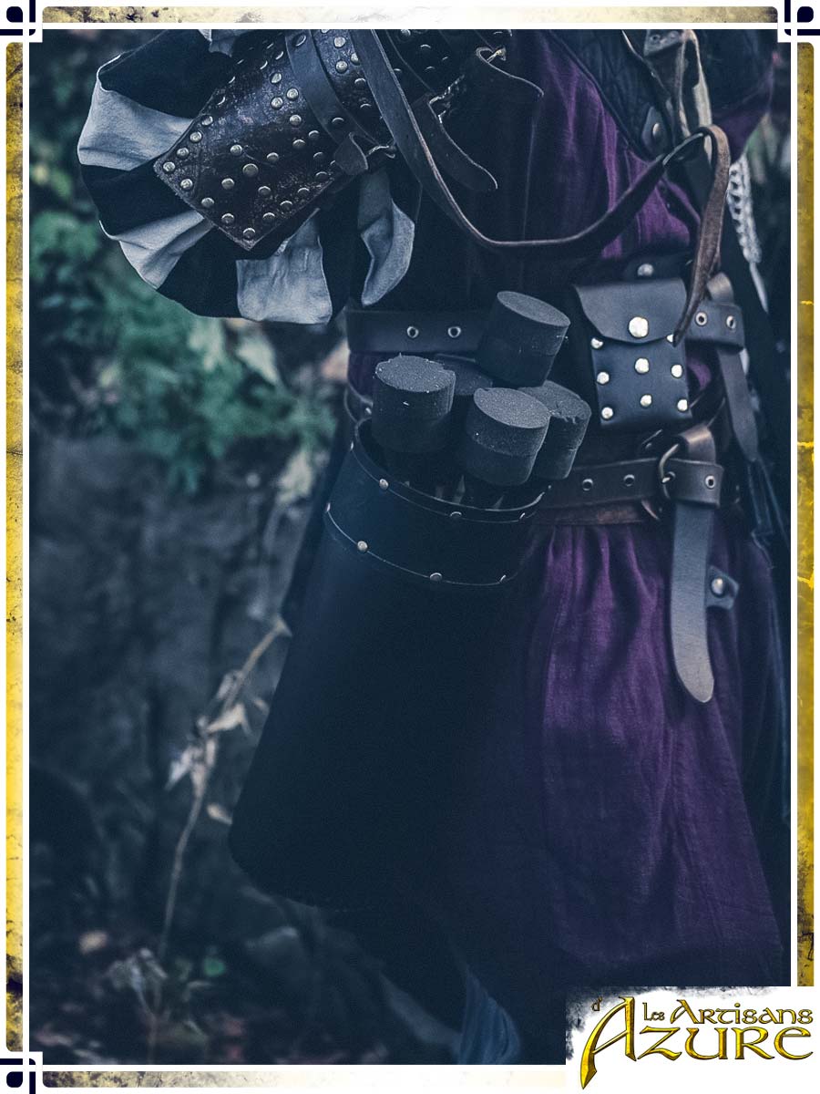 This crossbow leather quiver is the perfect accessory for carrying your LARP crossbow bolts. It is designed to be worn at the waist on a belt, so it can be carried on either the left or right hip. With its practical, sturdy design, this Bolt Quiver will be an excellent addition to any LARP mercenary, hunter, or sniper character.