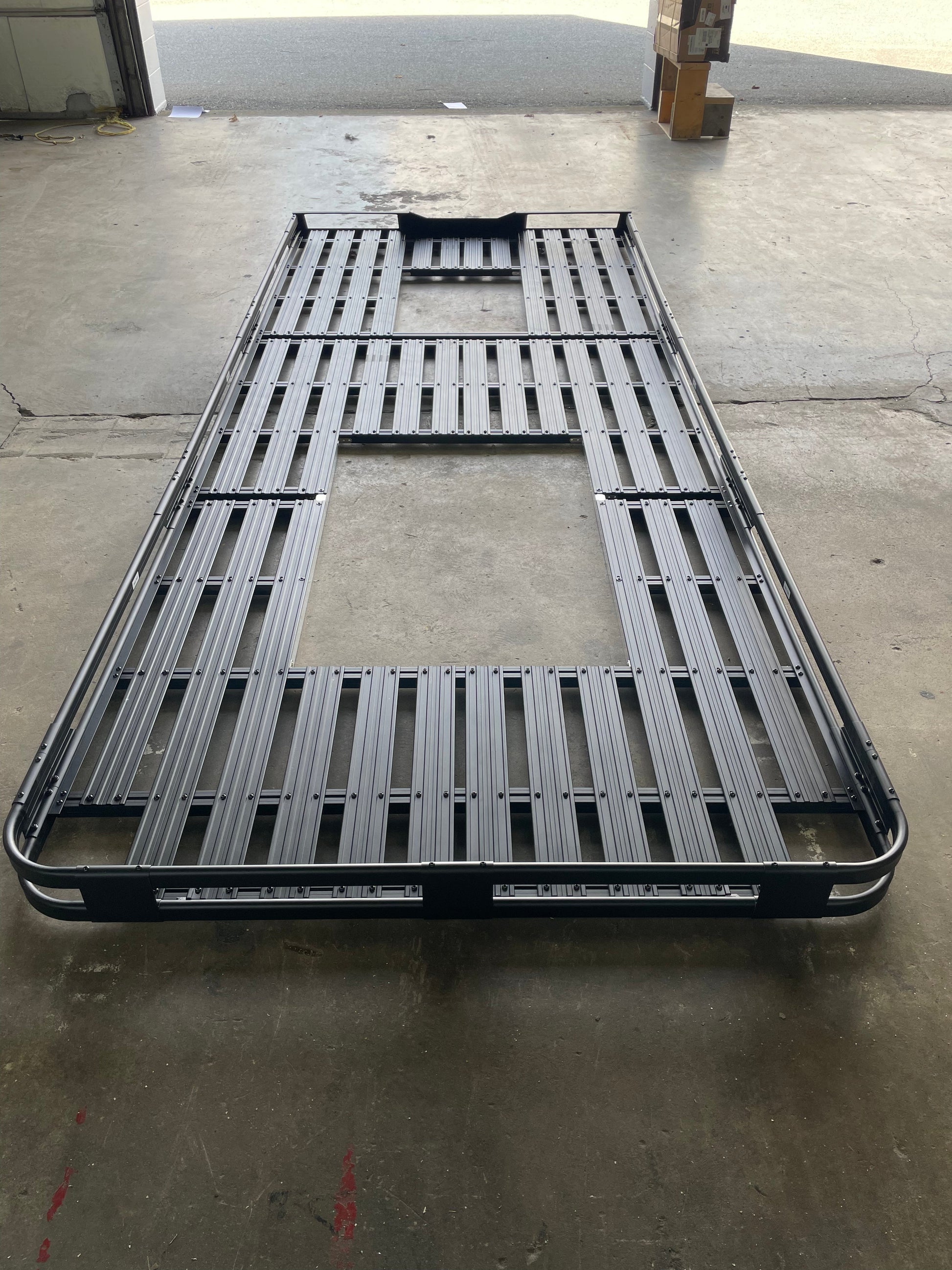 Introducing the Tec Vanlife Custom Modular Van Roof Rack - the perfect solution for all your van storage needs. Made with durable aluminum, this roof rack is customizable to fit the unique specifications of your van, making it a perfect fit every time.