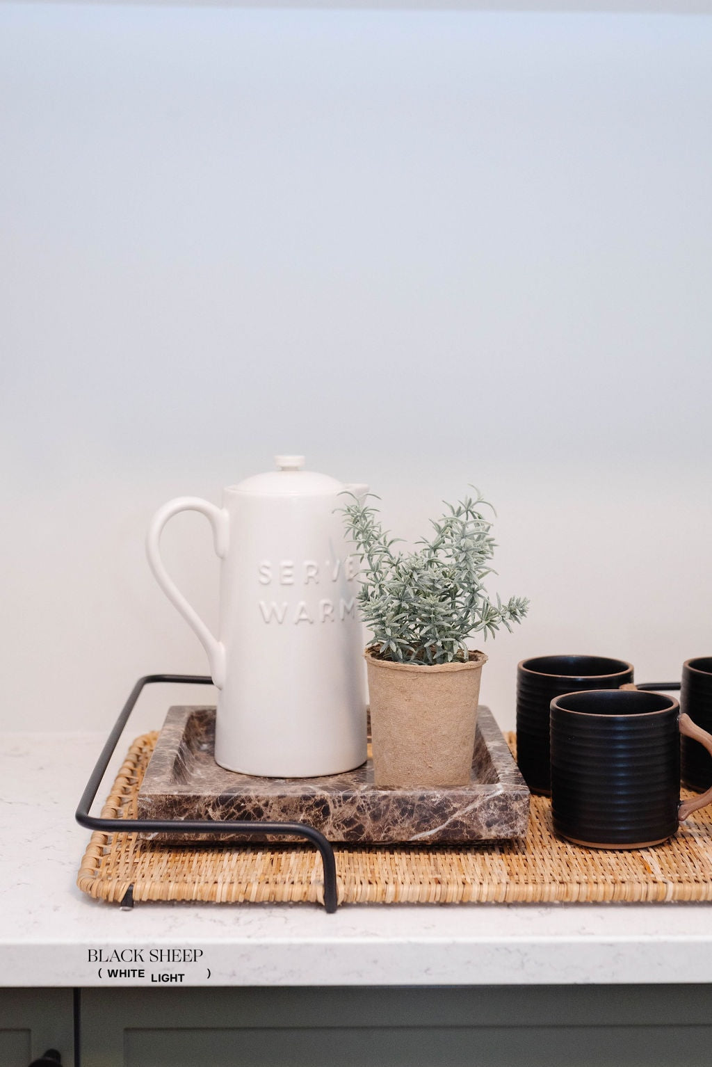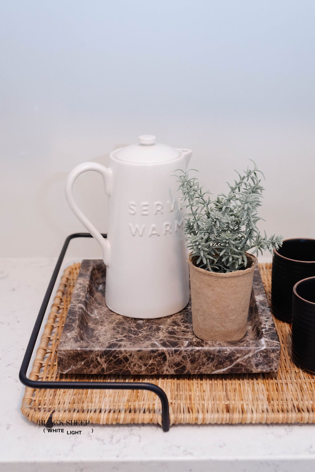 Our marble square tray is carved from a solid piece of marble with an elegant base reveal and finished in a honed surface treatment.