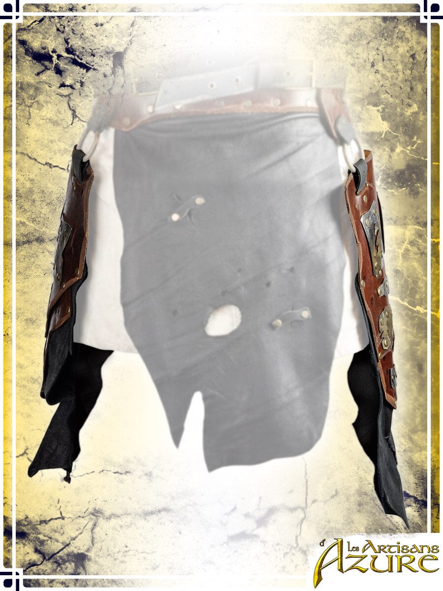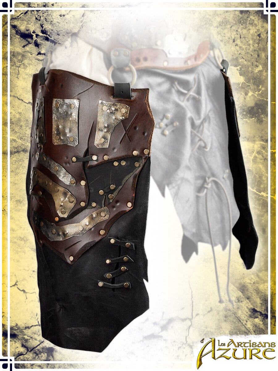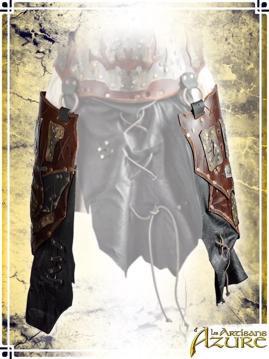This armor was designed for a true barbarian warrior. Vegetable leather molded and plated metal patina, each piece is carefully worn out by hand, which gives its wearer the look of one who has experienced a lot of violent battles. Completely modular, it is possible to choose several types bracers, pauldrons and sleeves to customize the set. Because the handmade aging effect, each piece is unique from one series to another. The Destroyer Armor, fully customizable, has everything to make its bearer the most impressive and ferocious of all rampagers! These tassets are a great choice for any raider, scavenger, brute, wasteland marauder, orc, goblin, or monstrous character in LARP.