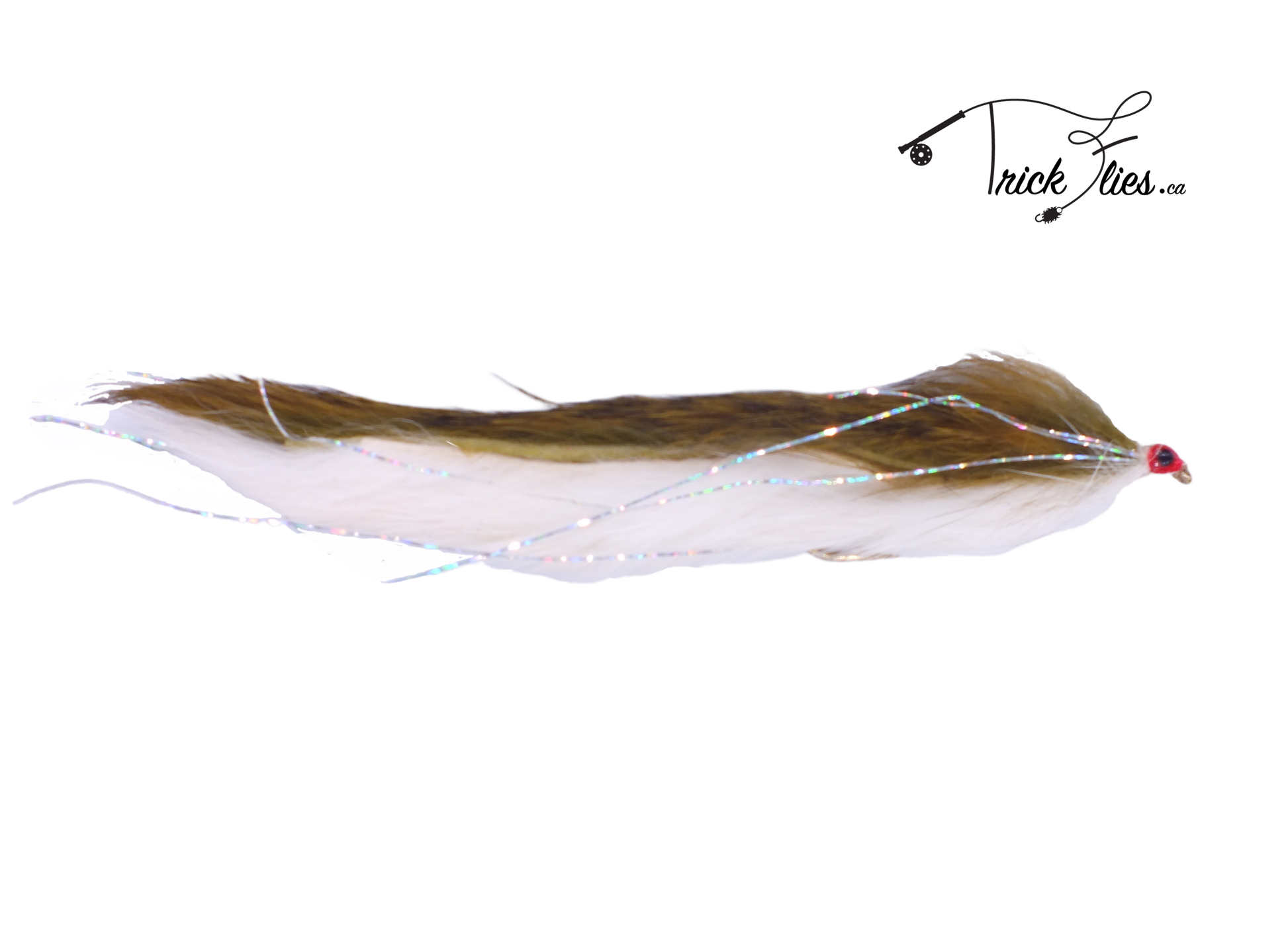 Targeting big trout? Everyone else is too, except those that don't have our Double Bunny Streamer Olive and White. Double rabbit strips create an irresistible movement to entice all forms of predators including bass, steelhead, pike and many others.