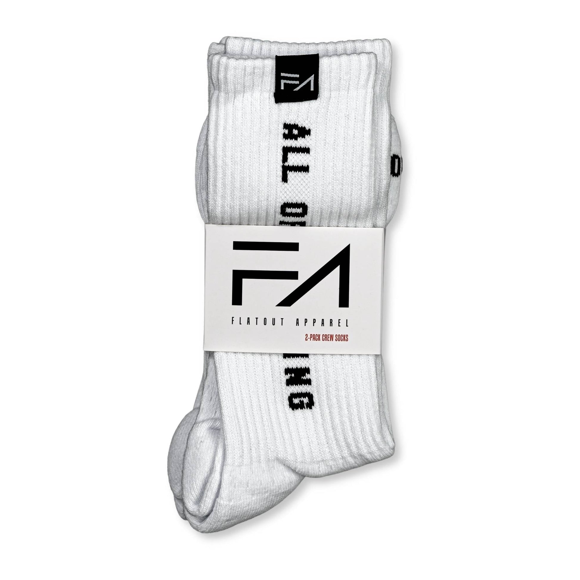 Sock it to ‘em! The Flatout Crew socks provides the perfect blend of comfort, stretch, performance, and style. Equipped with mesh detailing to keep your feet the perfect temperature and ribbed cuff to keep them in place from treadmill to sidewalk. The mid calf crew length is perfect to show off your ‘All or Nothing’ attitude and will be the perfect outfit addition.