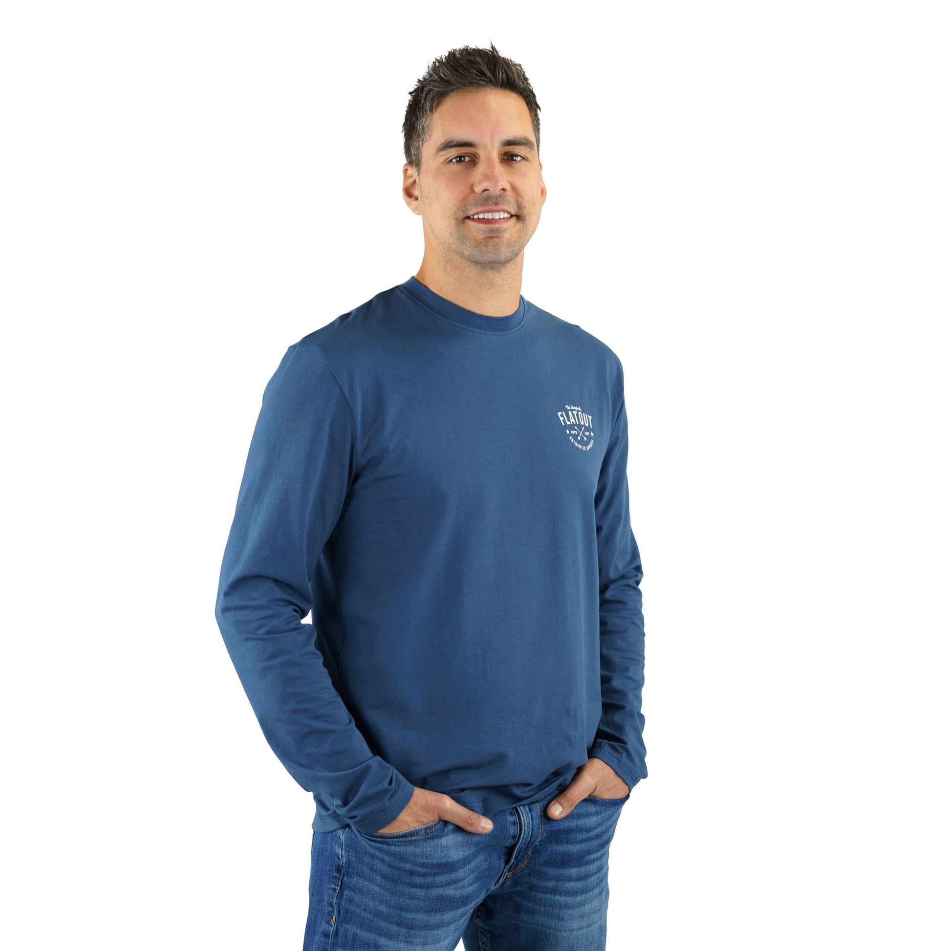 Introducing our Men's Originals Petrol Blue Long Sleeve Tee - the perfect blend of style and comfort for those who live life Flatout! Made from a high quality Cotton / Spandex blend, our T-shirts are designed to offer the ultimate comfort to men who are always on the go. Whether you're heading out to a night on the town or tackling your daily errands, our T-shirts will keep you looking and feeling your best.
