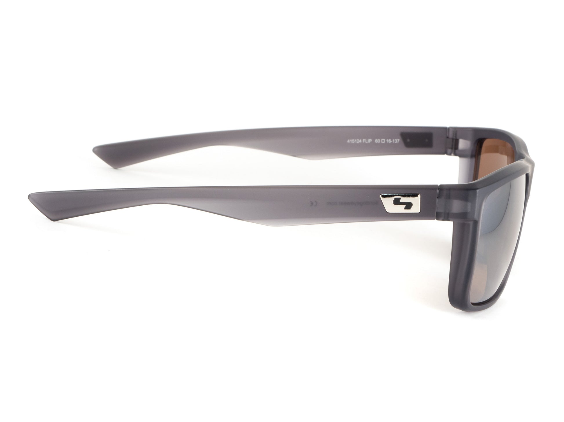 A classic frame front and straight-back temples make it an ideal athleisure style. Featuring a Crystal Grey/Brown Frame and White Mirrored lenses, FLIP will have people turning heads.