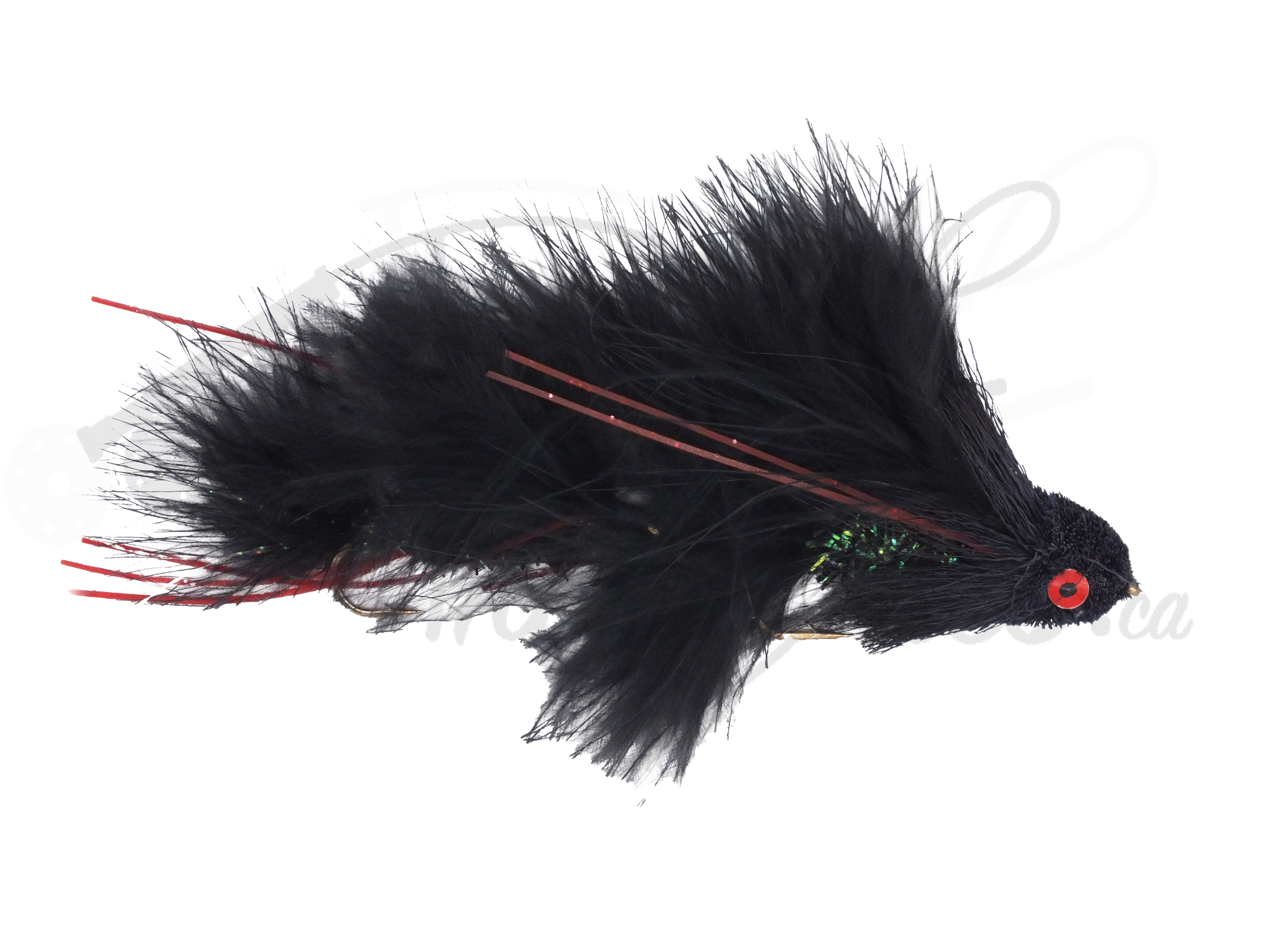 Galloup's Sex Dungeon Black is our first articulated streamer and is a very popular fly for steelhead, brown trout, bull trout, large and smallmouth bass, walleye and pike. Cast it to promising water and retrieve very quickly to entice a strike, then hold on.
