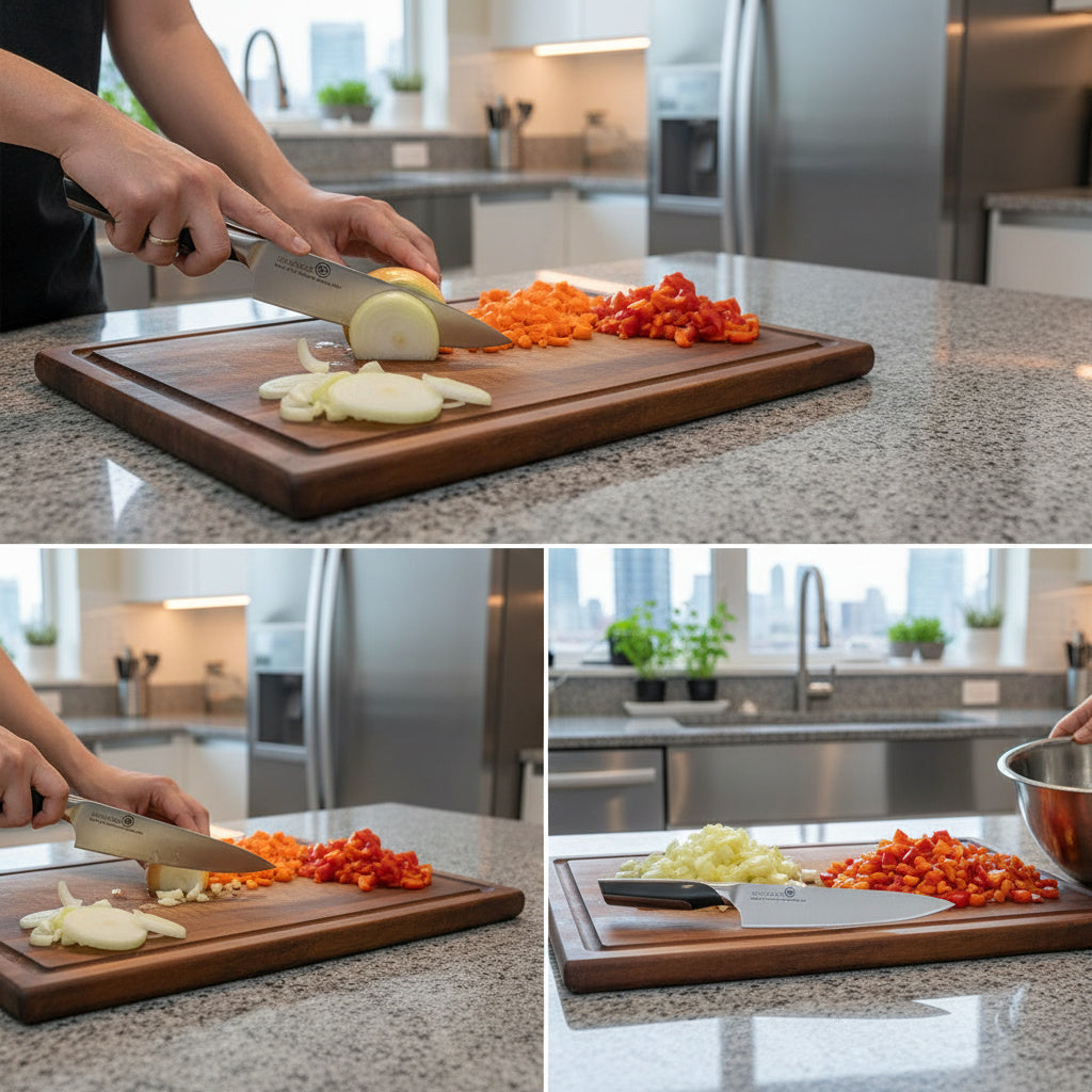 As part of the Ginza Steel Küchen Series, the Schneide Chef Knife represents the brand’s dedication to quality, functionality, and everyday value. Whether you’re an enthusiastic home cook or a seasoned chef, this knife offers dependable performance with every cut.