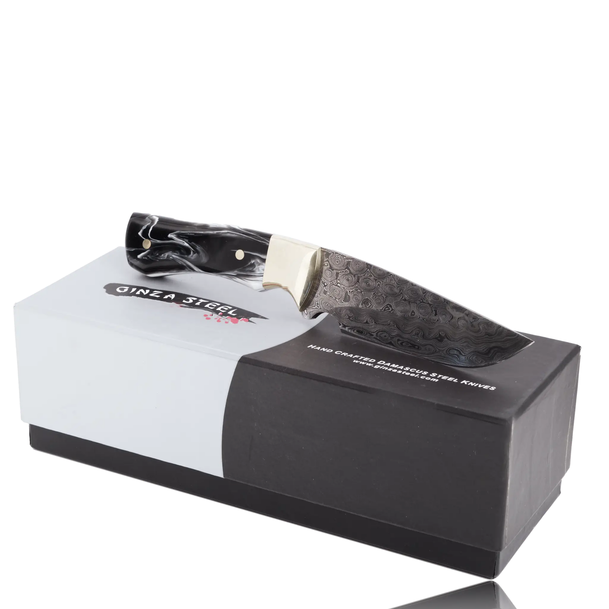 Precision, beauty, and durability—experience true craftsmanship with the Ginza Steel Kaito Damascus Skinner Knife.