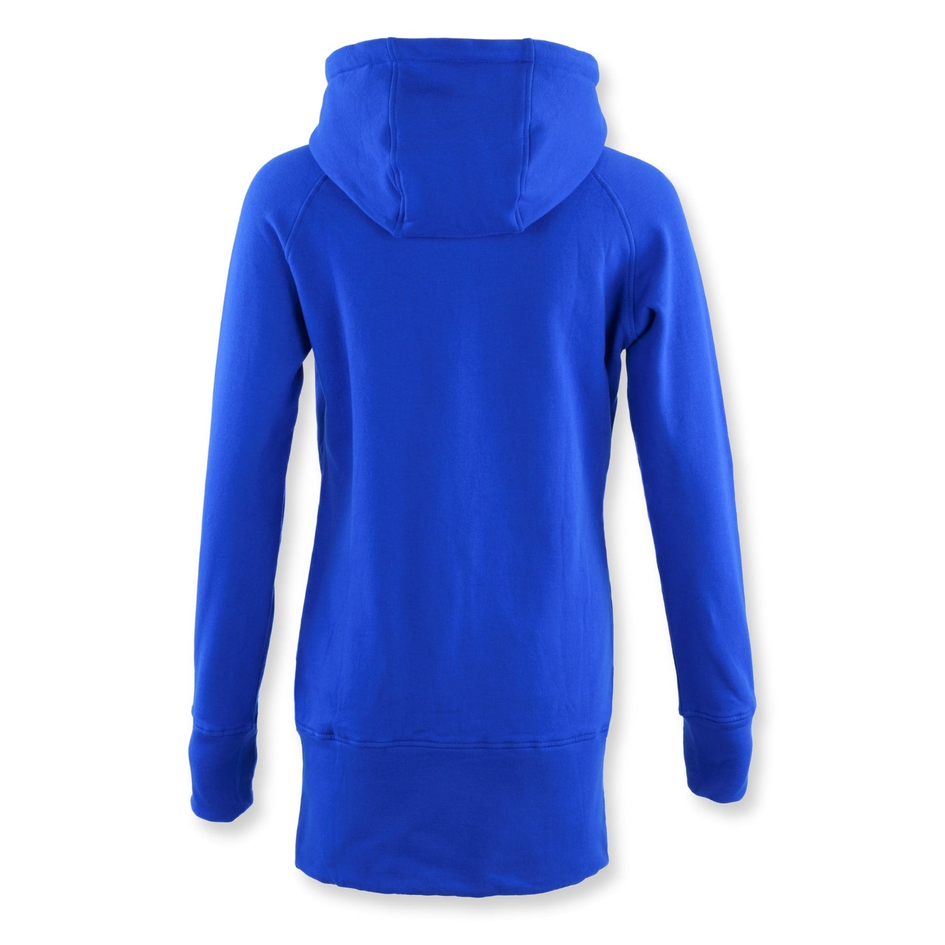Say hello to our Royal Blue Kora Long Zipup—your newest wardrobe obsession. Spun from a luxurious cotton-spandex fleece blend, this hoodie delivers unparalleled comfort from sunrise to sunset. The extended cut ensures you'll stay warm where it counts, while details like dual pockets, Flatout-designed drawstring tips, and a chic faux leather patch take this piece from staple to standout.