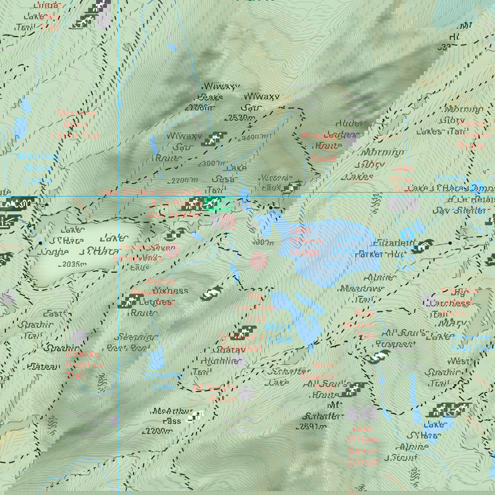 Focusing on the Lake O'Hara area of Yoho National Park British Columbia, this BRMB Adventure topographic map highlights all the backcountry huts and cabins, campgrounds, trails for hiking, horseback riding, mountain biking, cross-country skiing and snowshoeing, fishing lakes, rock climbing areas, viewpoints, waterfalls and more! This Adventure map features our industry-leading topographic contours and relief shading and includes the areas surrounding Lake O'Hara, Abbot Pass Hut, Cathedral Lakes, Elizabeth Parker Hut, Lake McArthur, Lake O'Hara Lodge, Lake Oesa, Linda Lake, Mary Lake, Morning Glory Lakes, Opabin Plateau, Park Mountain, Seven Veil Falls, Vera Lake, Victoria Falls and more!