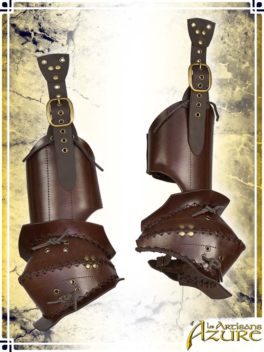 These finely hand-stitched elbow pads add a touch of panache to your LARP costume while providing optimum protection. Comfortable and flexible, they perfectly complement the Lord's armbands and shoulder pads for complete arm armor. A discreet strap on the inside of the elbow keeps the elbow pad in place, while laces allow custom length adjustment. The biceps are held in place by a three-position adjustment system and a buckle that attaches securely to the armor's torso.
