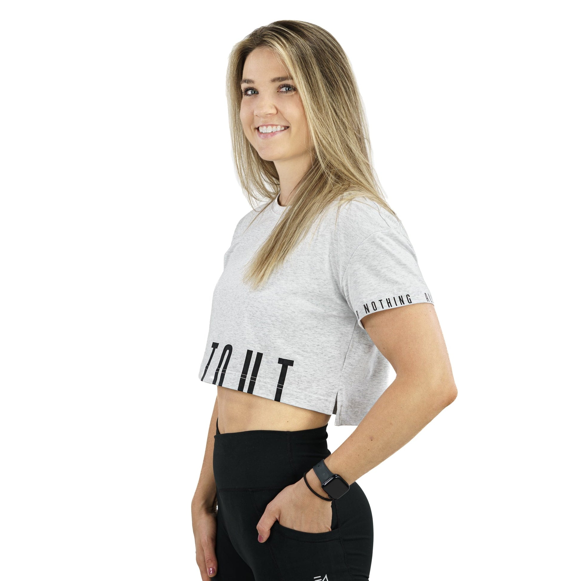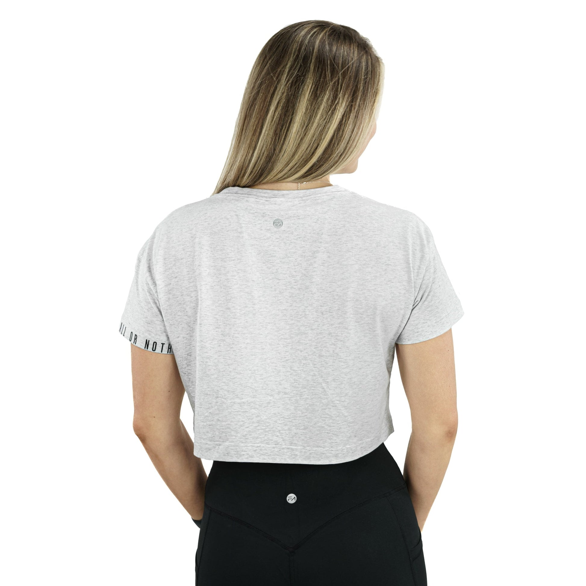 Nice to meet you, I’m your new favorite shirt the Madi Crop Tee in Heather Grey. I like long gym sessions, summer fun, and the occasional rest day. Created with the help of an Ambassador this crop tee will help you get the most out of your life – All or Nothing!