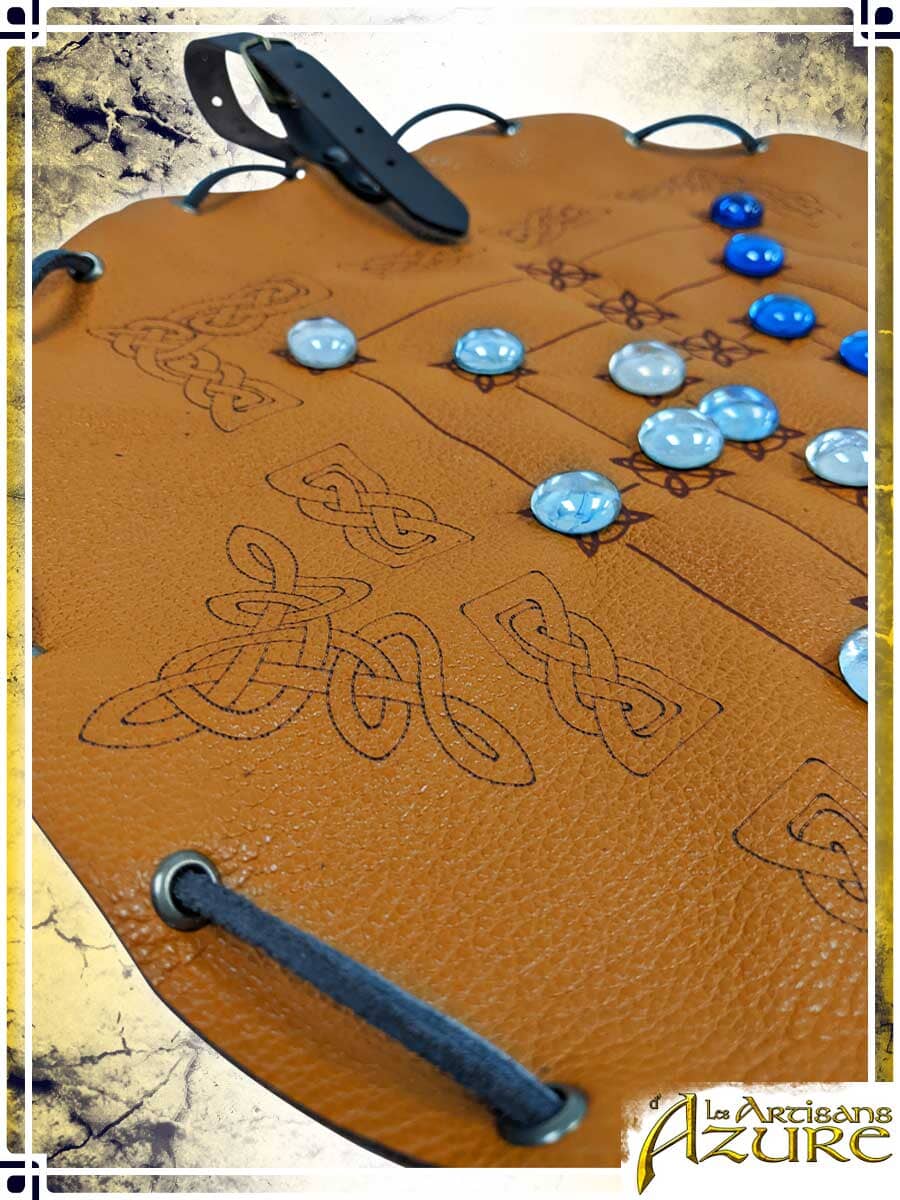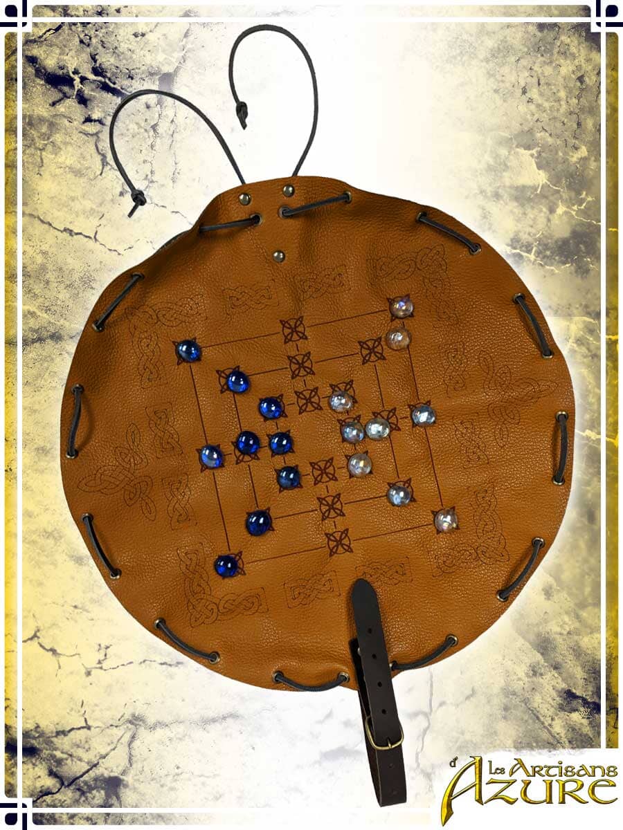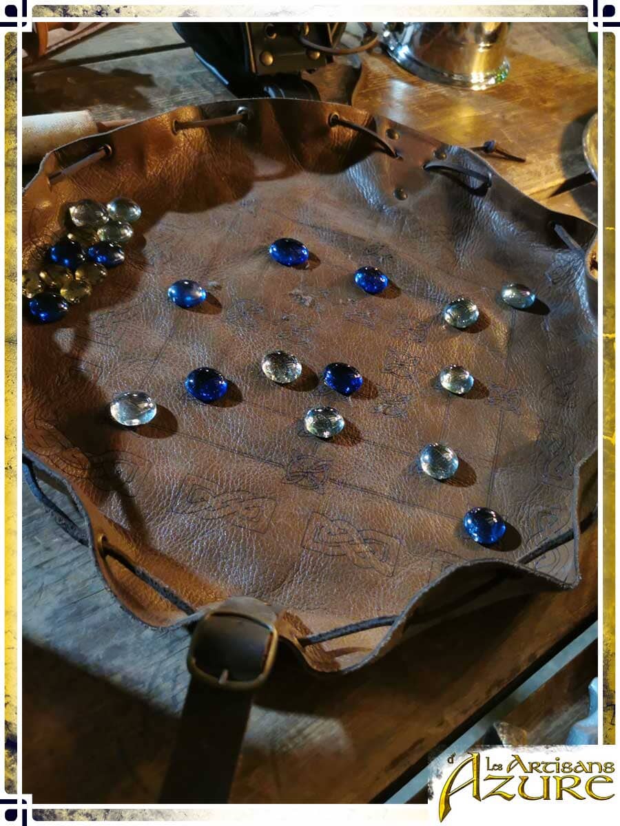 An ancient game originating from Western Europe, the Morris game, also called Merels, is played by moving your pieces to line three of them up, allowing you to destroy your opponent's pieces. It is the perfect accessory to entertain yourself and test your tactical skills during a LARP event, without leaving yourself vulnerable to surprise attacks. You can keep your attention 100% focused on the game, knowing that, thanks to its practical design, the board can be folded in an instant and all its pieces gathered inside the bag, easy to carry away from danger, or even into combat, attached to your belt. Gone is the time of the heavy wooden boards, you are now ready to adventure with your transportable Morris game!