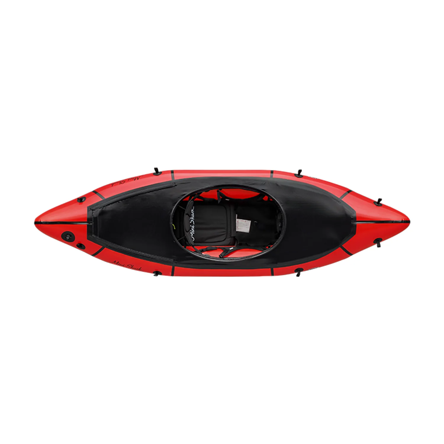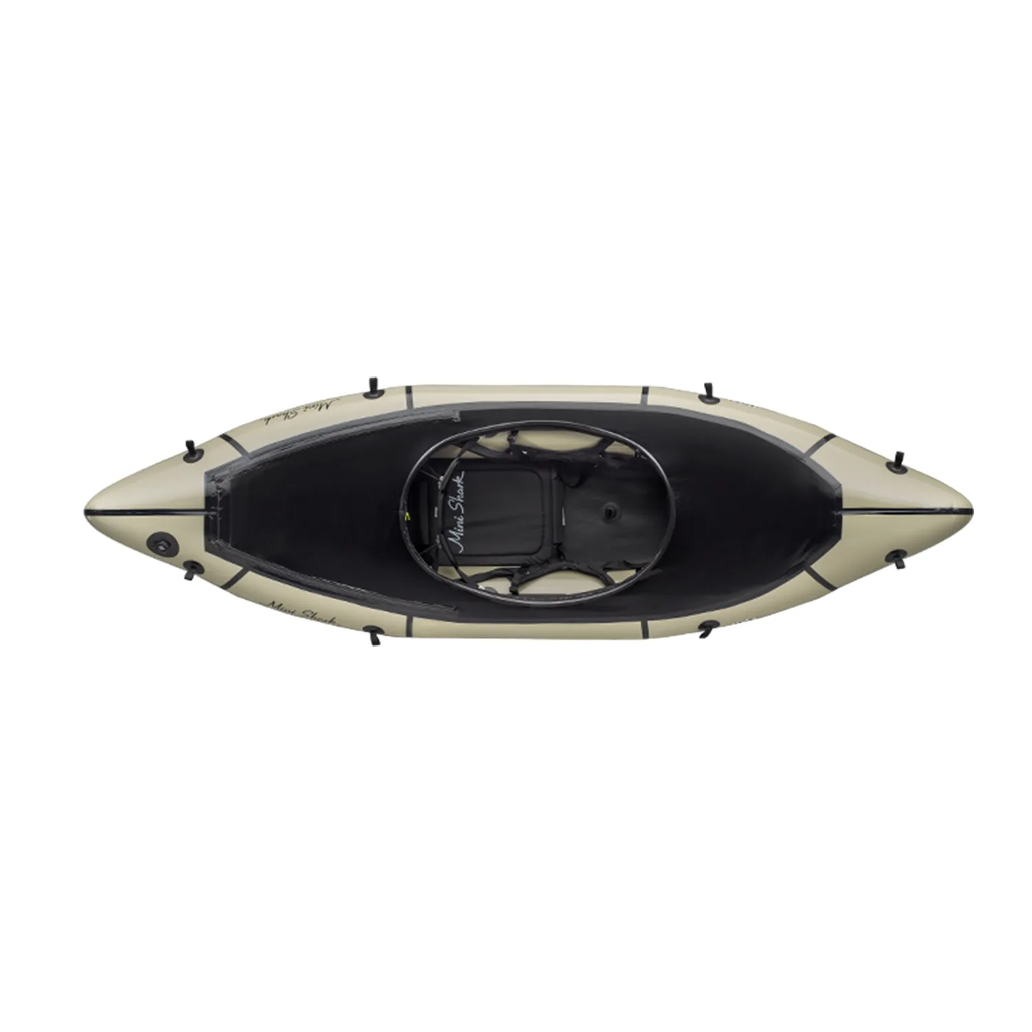 - The Mini Shark boasts a sleek, streamlined hull and a subtly upturned bow. These features enhance its appearance and make it a powerhouse in white water, effortlessly navigating through waves and boosting the packraft's agility. The tube is smaller than other models, which makes climbing back into the boat and self-rescue easy after capsizing. At the same time, the low-center-of-gravity seat makes it easy for the paddler to keep balance in white water, offsetting the negative impact of the small tube on stability.