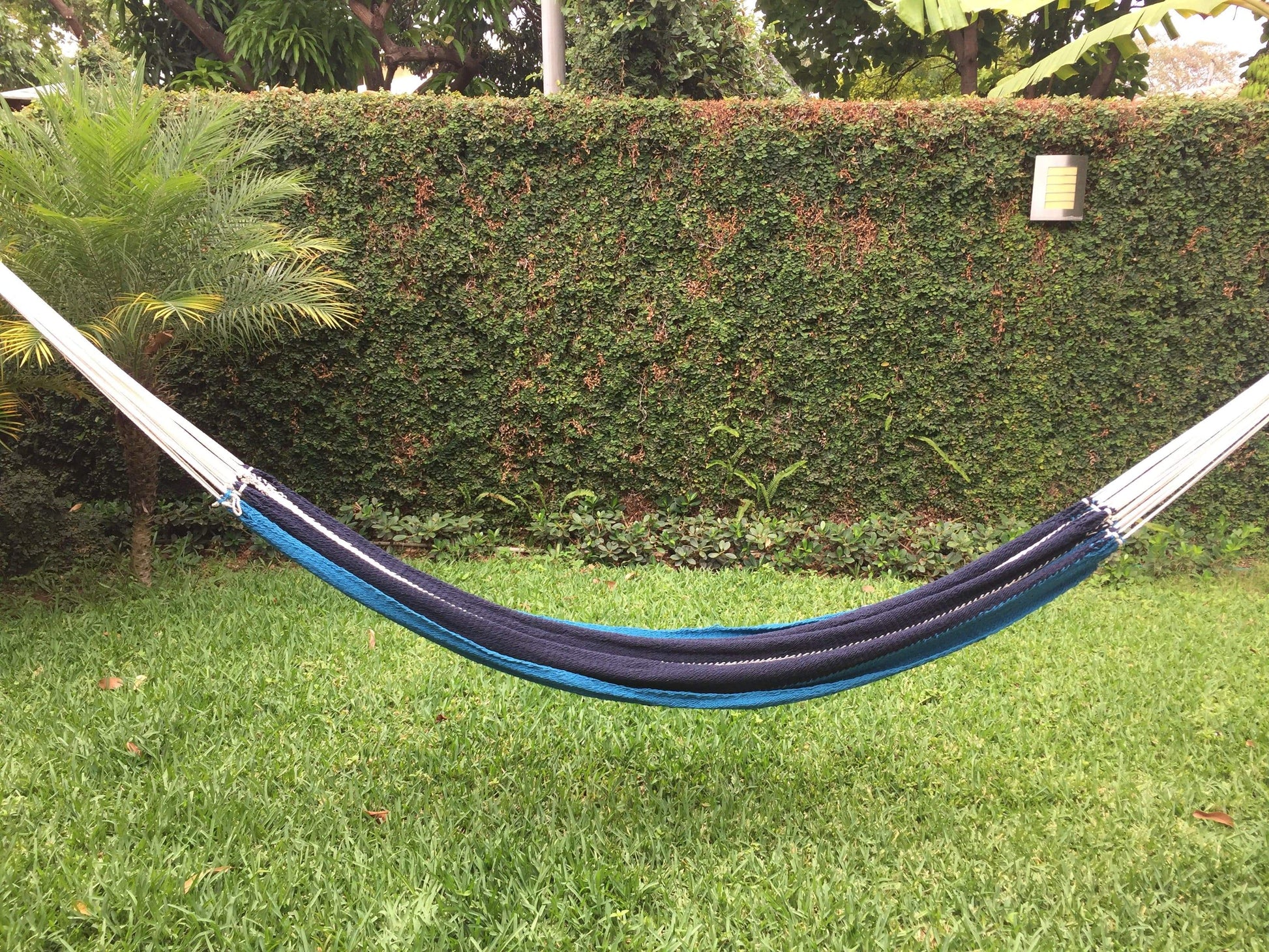 The Nicaraguan Hammock is huge. An enormous amount of cotton is used, resulting in a thick, sturdy and immensely comfortable hammock.