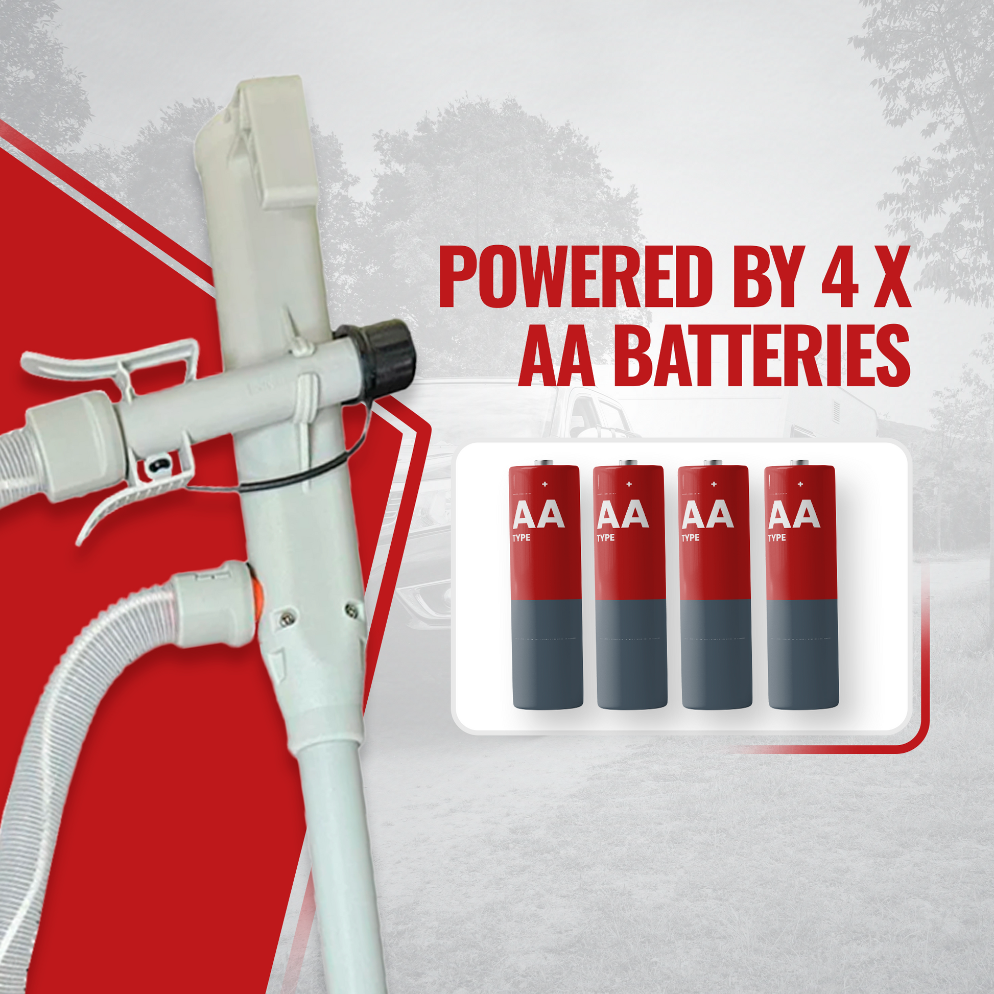 Runs on 4ΓAA batteries (not included). Cordless, portable, and easy to store.