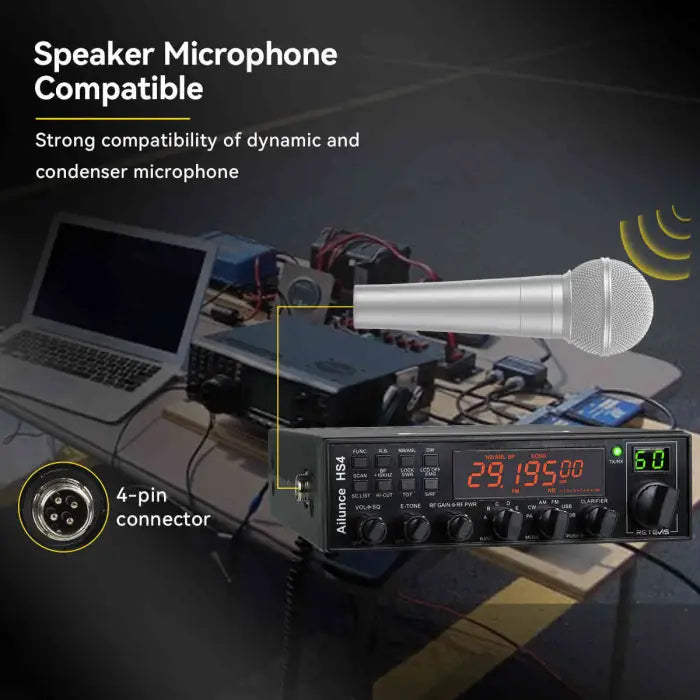 Updated for 2024 This popular 10M Mobile CB Style Amateur Ham Radio now includes CTCSS/DSC tones, and the ability to attach both Electret and Dyna style mics to its standard 4 pin microphone connector.