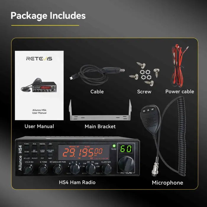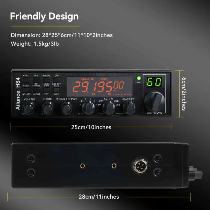 Retevis Ailunce HS4 10-12 Meter SSB Ham Radio AM/FM/PA/USB/LSB/CW Mobile Transceiver