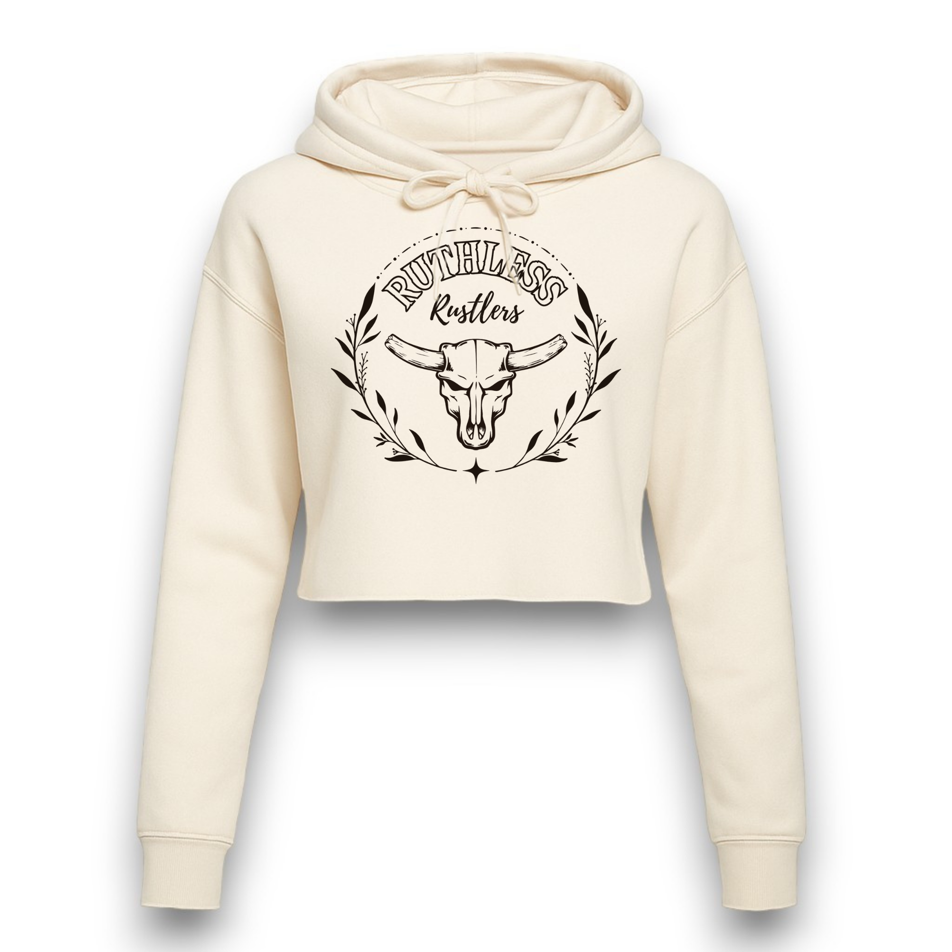 Stay fierce and comfortable with the Ruthless Rustlers Cropped Hoodie, crafted from ultra-soft, lightweight fabric for the perfect blend of warmth and breathability. Designed with a relaxed fit and bold logo, this hoodie lets you embrace your wild side while keeping it effortlessly stylish. Ideal for layering on cooler days or making a statement on its own – this is the go-to piece for unstoppable comfort and unmistakable style.