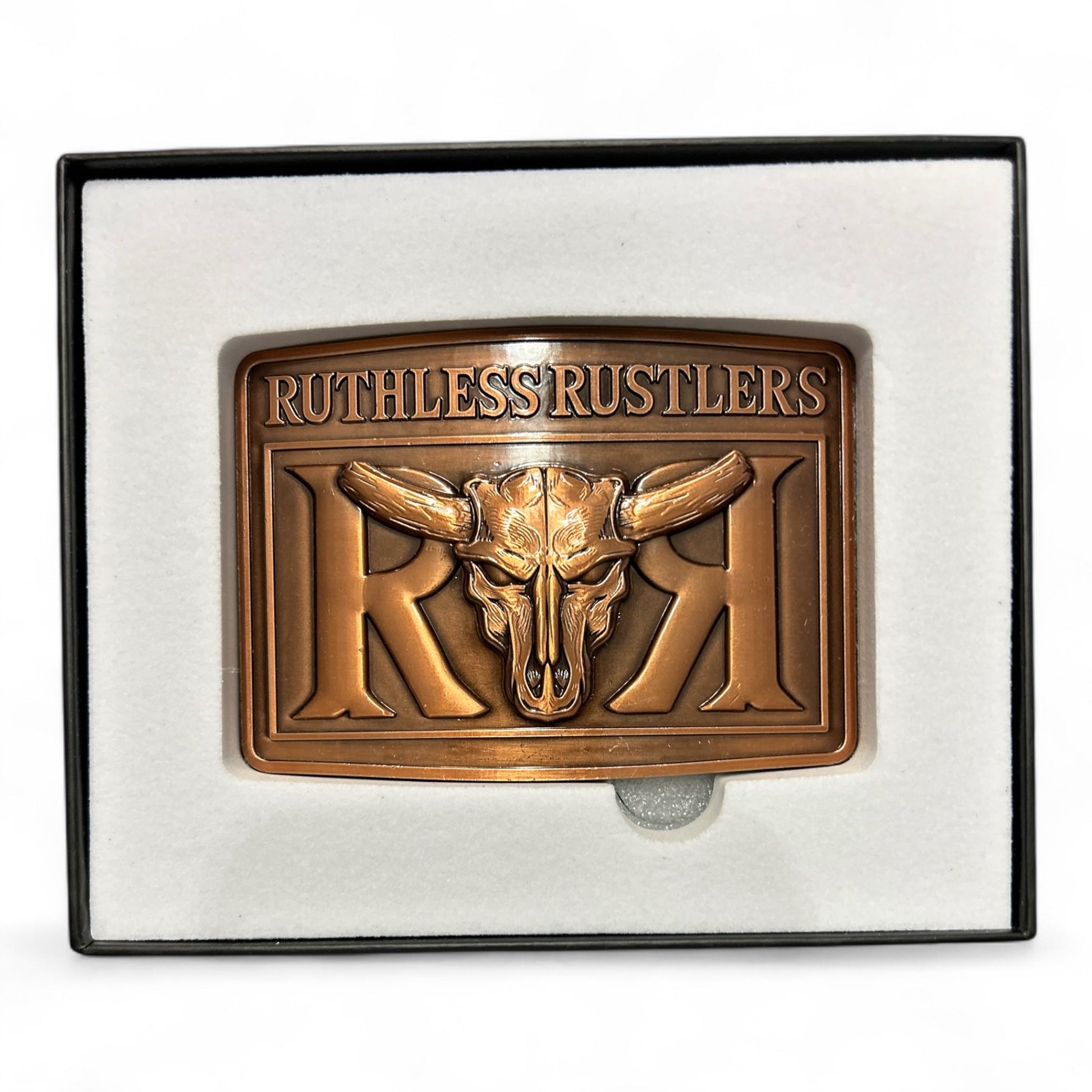 Ruthless Rustlers RR Bold Belt Buckle | Antique Copper