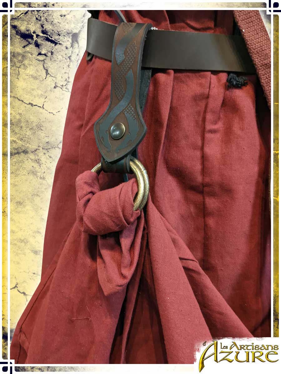 Aiming for a more practical and utilitarian perspective, two very important elements in LARPs, the skirt hikes were designed to give more options while wearing a skirt during LARPing events. Whether it is to move your skirt out of your way during hasty movements or terrains which could be dirty, it is easy to tuck it near your belt. The two rings allow you to hold your skirt a bit higher to ease your life. As well, it is possible to use it to create additional layers and give you more options with your costume. This accessory is available in three different models for any type of character, whether you are a magician, witch, druid, noble, noblewoman, or innkeepers characters!