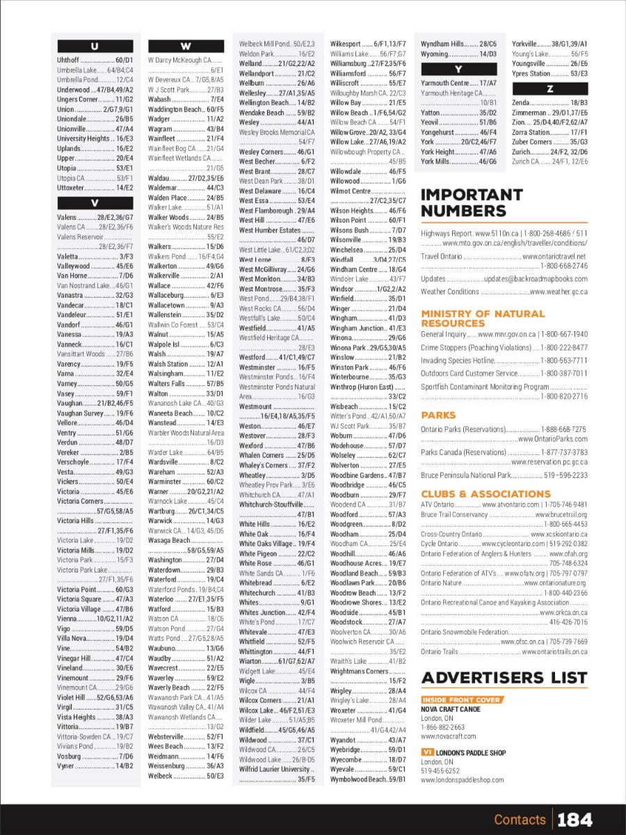 Our southern Ontario backcountry map book guides your way through the region, including the Greater Toronto Area plus Ontario’s largest established trail network. In addition to urban attractions in Toronto, London, Hamilton and beyond, and the natural wonder that is Niagara Falls, southern Ontario provides a range of outdoor recreation activities.