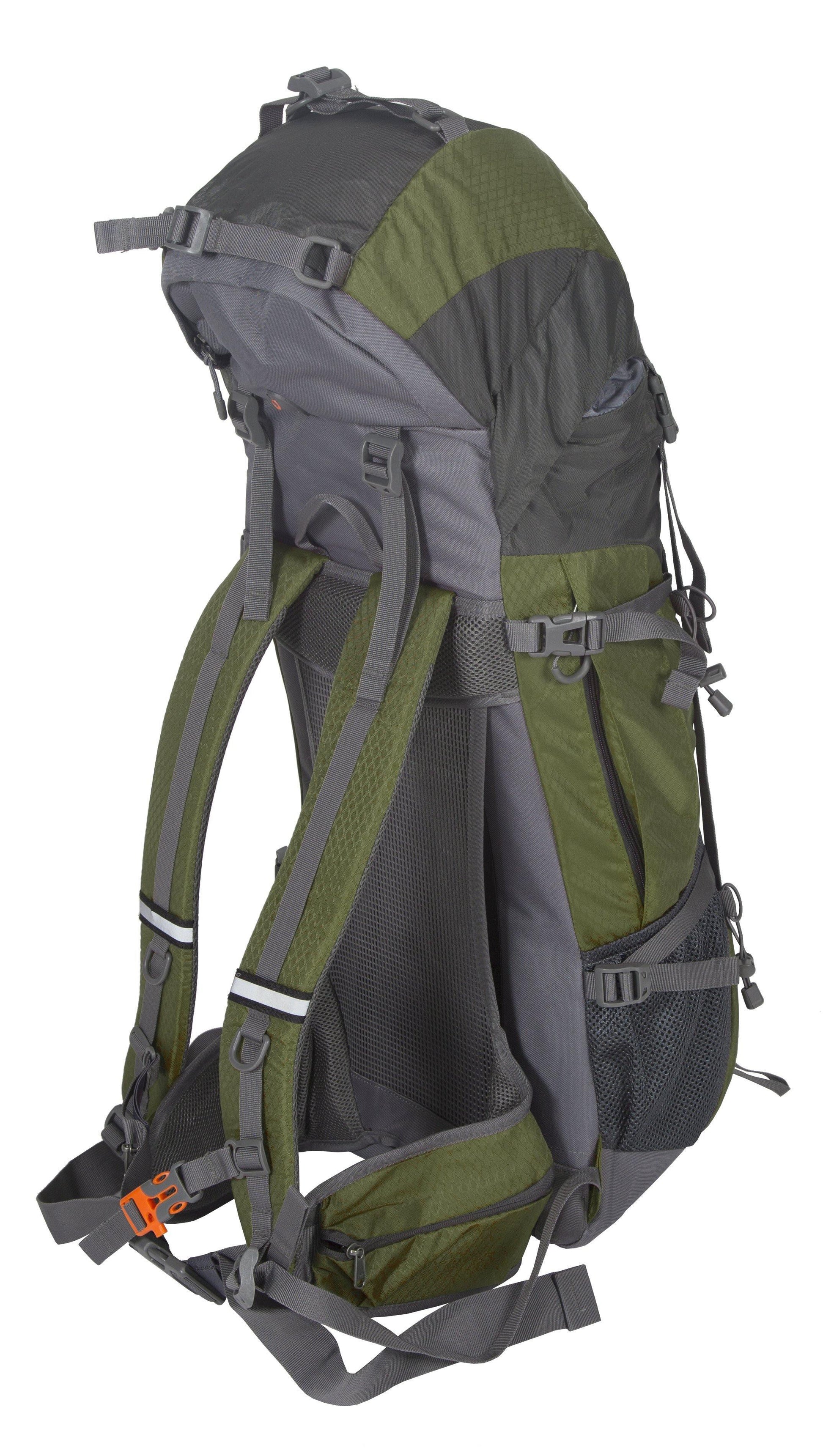 When you like to head way out into the backcountry, a little pack won't cut it. This pack has enough storage space for days of backcountry hiking, and hitech features to lighten your load. A zippered sleeping bag compartment divider keeps your sleeping bag lofted and separated from the rest of your gear, but easily accessible through a zippered sleeping bag access panel. Our max flow suspension system moves the load off of your back, and provides a cooling breeze. And, if you like to rock out while you hike, our adjustable lid features media port for your headphones!