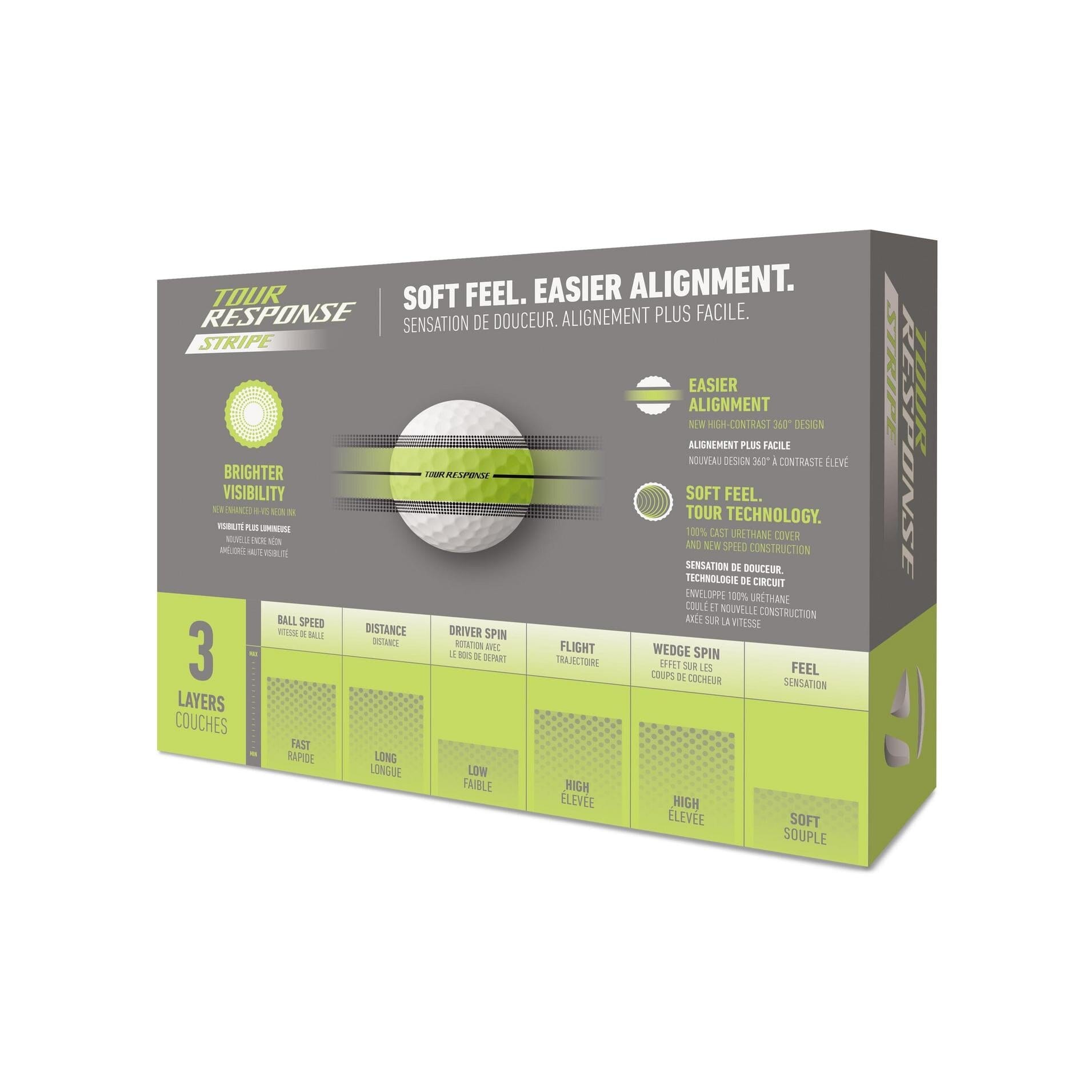 The path to better golf begins with the all-new Tour Response™ and Tour Response Stripe™ Golf Balls. Built with Tour-quality materials like a 100% urethane cover and a Speed Wrapped Core, Tour Response and Tour Response Stripe Golf Balls are incredibly fast and soft.