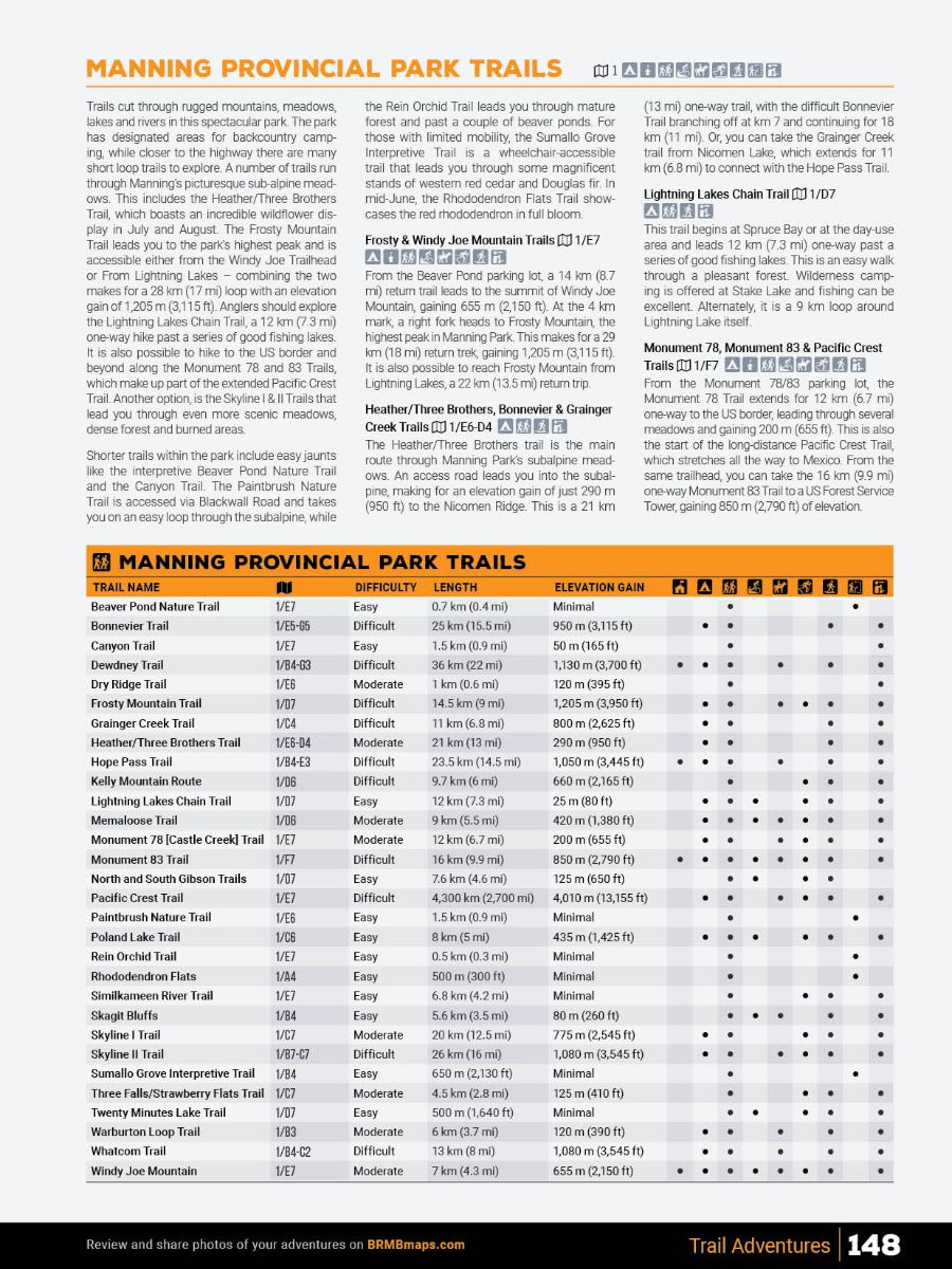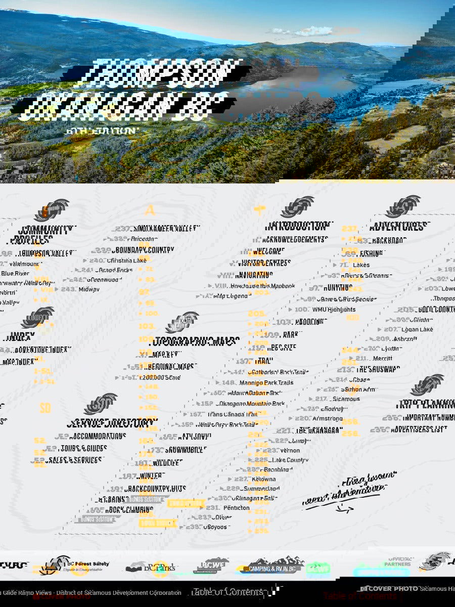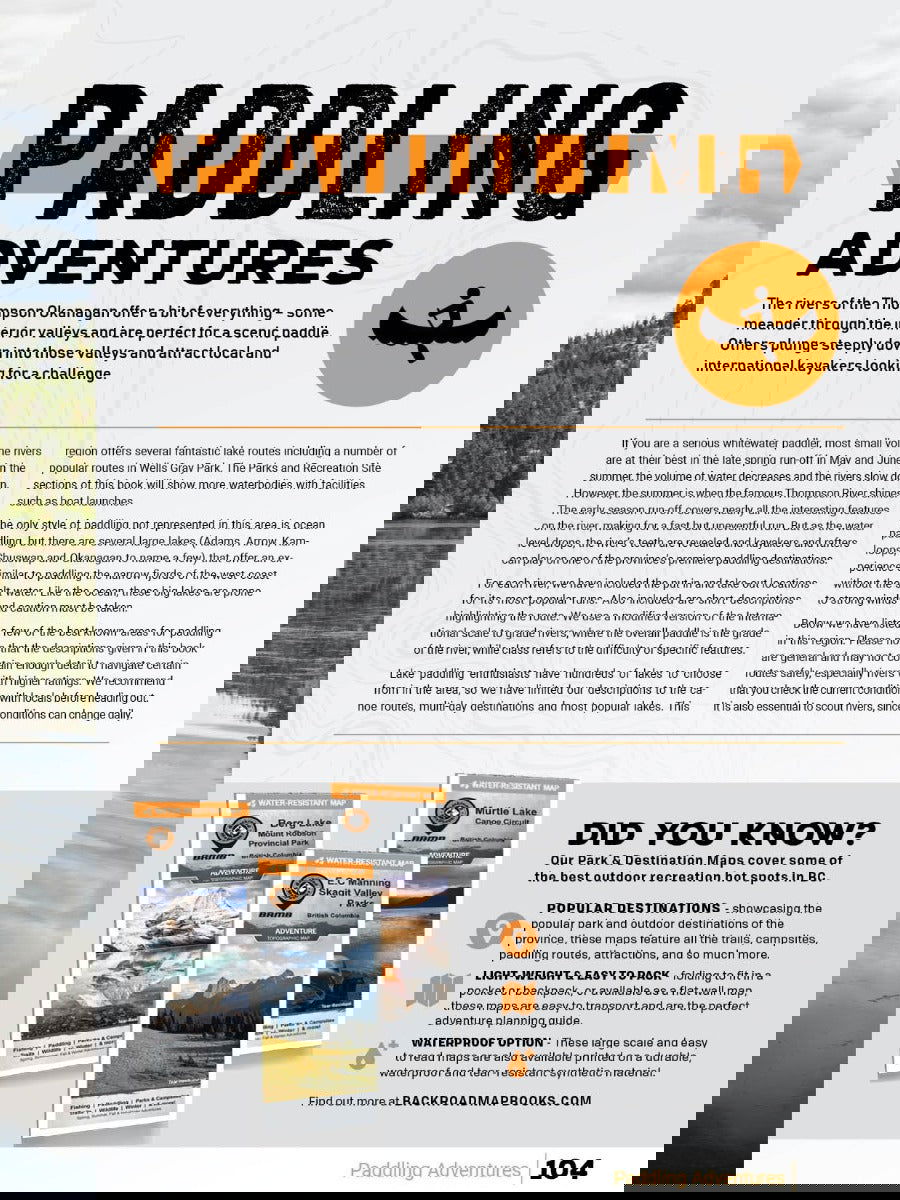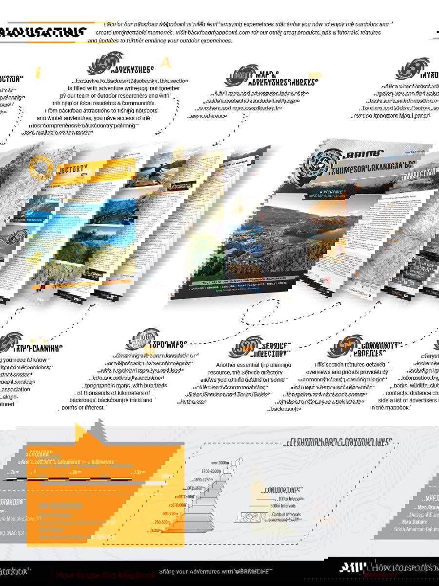 Covering the heart of BC’s interior, including the cities of Kamloops, Kelowna, Merritt and Penticton, this Mapbook is your ultimate guide to camping, hiking, fishing, ATVing, snowmobiling, hunting, cross-country skiing, paddling and more in this incredible region. From the lush forests of Manning Provincial Park to the sparkling waters of Okanagan Lake, the arid desert landscape around Osoyoos, the pristine beaches of the Shuswap and the vast wilderness of Wells Gray Provincial Park, the Thompson Okanagan is an outdoor explorer’s paradise. To help you make the most of your time in this incredible area, the Backroad Mapbooks team has created the most comprehensive, detailed and easy-to-use Mapbook available for the region, so you can embark on the outdoor adventure of your choice with confidence.