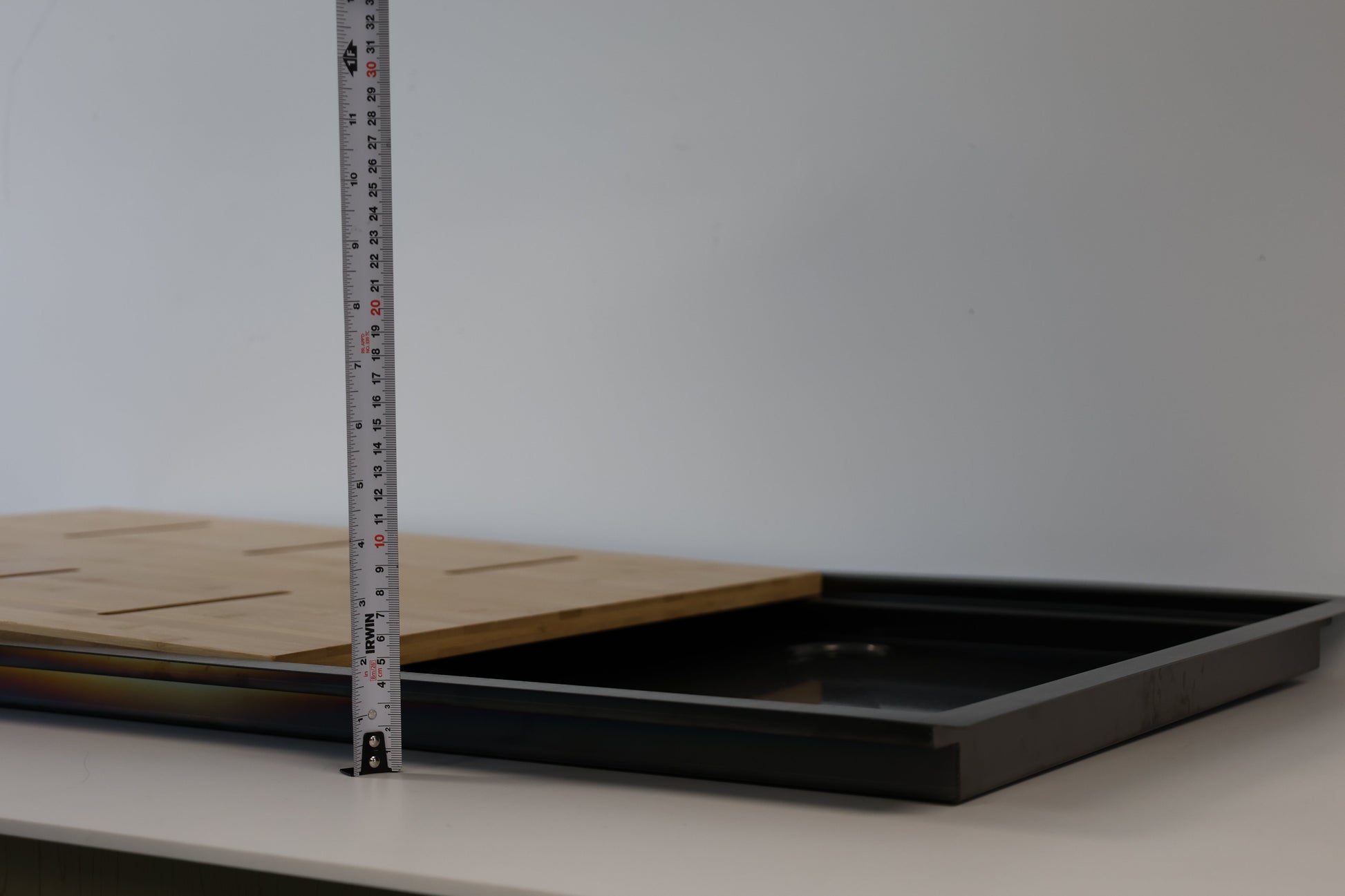 - Flush-Mount Design: The low-profile shower pan can be inset into your floor, and when paired with the bamboo cover, it transforms into completely walkable, usable floor space—a vital resource in van life.