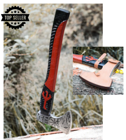 Explore the collection of hand-forged Viking axes, meticulously crafted in carbon steel for collectors. Our collection features an impressive range of Viking axes, from heavy-duty wooden axes with wide blades to francisca-style throwing axes. Whether you need a functional piece for display, or historical reenactment, we have an axe to match your needs. We even offer axe heads with 2mm edges, ideal for safe use in reenactments