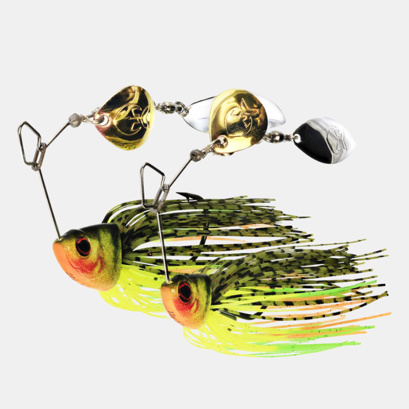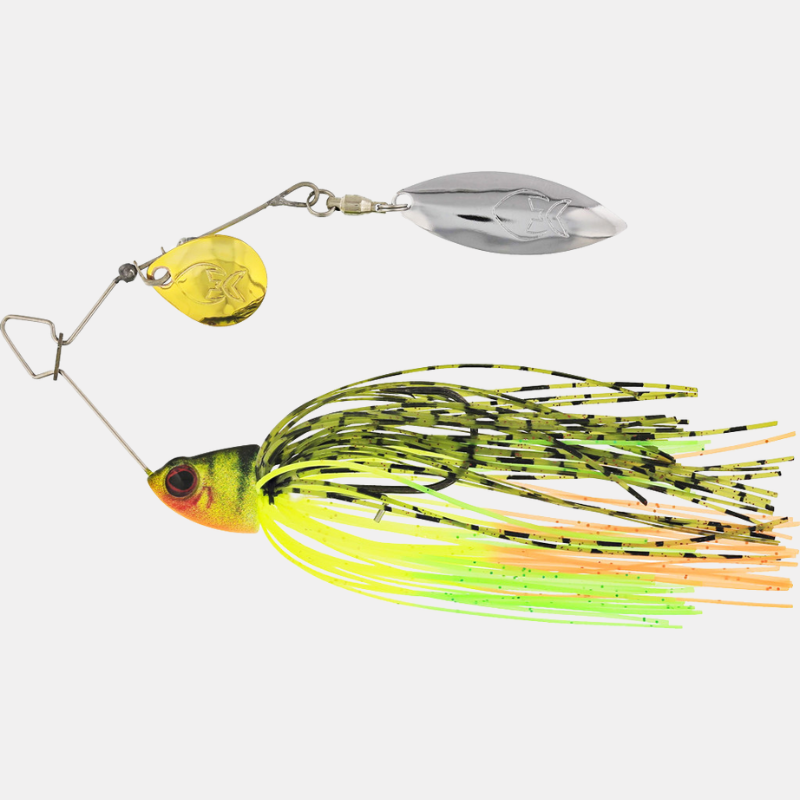 A new eco-friendly (leadfree) and great value spinnerbait range encompassing the most popular blades, weights, skirts and color combinations. The natural fish head weight, made of lead-free zinc, acts as a keel, stabilizing the action of the lure. Each spinnerbait has a thin, yet super-strong wire harness, combined with our new ‘Sure-Ring’ eyelet concept. Knot lines directly to the open eyelet, or attach the ‘Sure-Ring’ when using snaps and wire leaders. The carefully designed wire shape assures the perfect rotation of each blade and a straight tangle-free presentation! Last but not least, the extra-fine pulsating skirts in super-realistic color combinations make each design a sure-fire fish catching machine.
