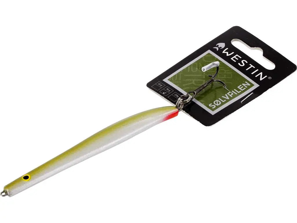 Translated into English Sølvpilen means Silver Arrow. This Lead-free lure will cast as an arrow flies, and it has proved to be a great lure to imitate prey like sand eels. Several sea trout exceeding five kilos have been caught on this lure and even Atlantic salmon has been caught when using Sølvpilen from the shore. So far the biggest we have heard of was a 10.7 kg salmon caught in Lillebaelt in Denmark.